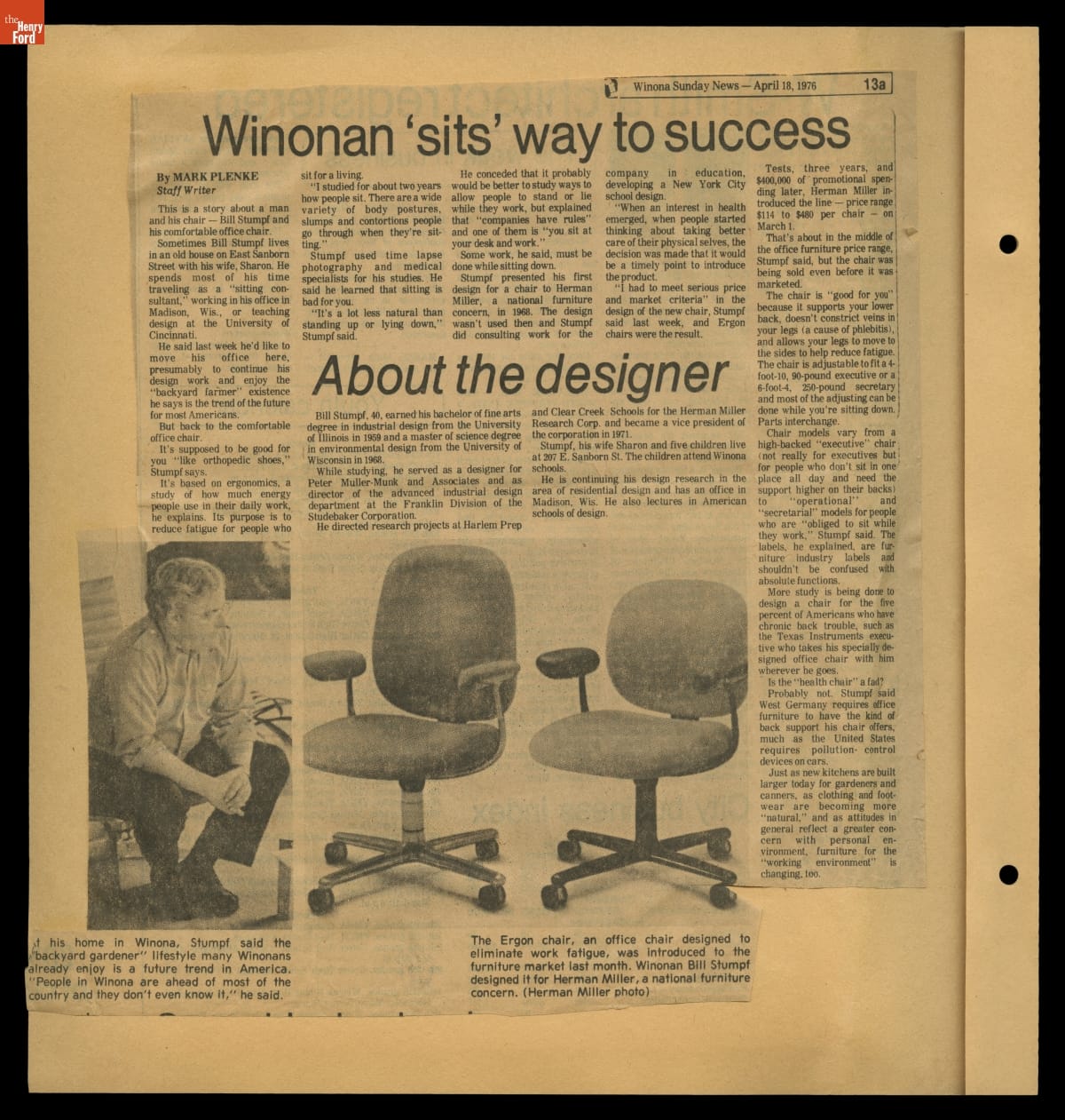 William E. Stumpf Resume and Work Samples, 1960-1984