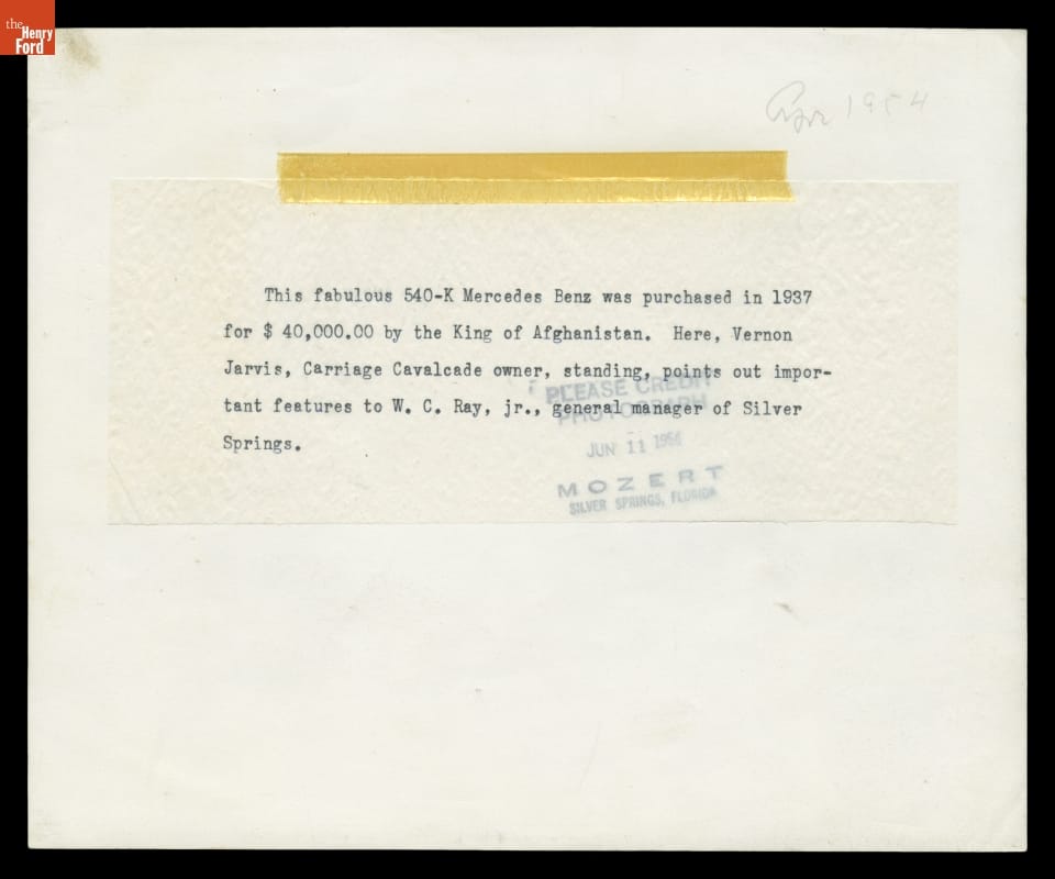 1937 Mercedes-Benz 540K Once Owned by Mohammed Zahir Shah of Afghanistan, in Silver Springs, Florida, 1955