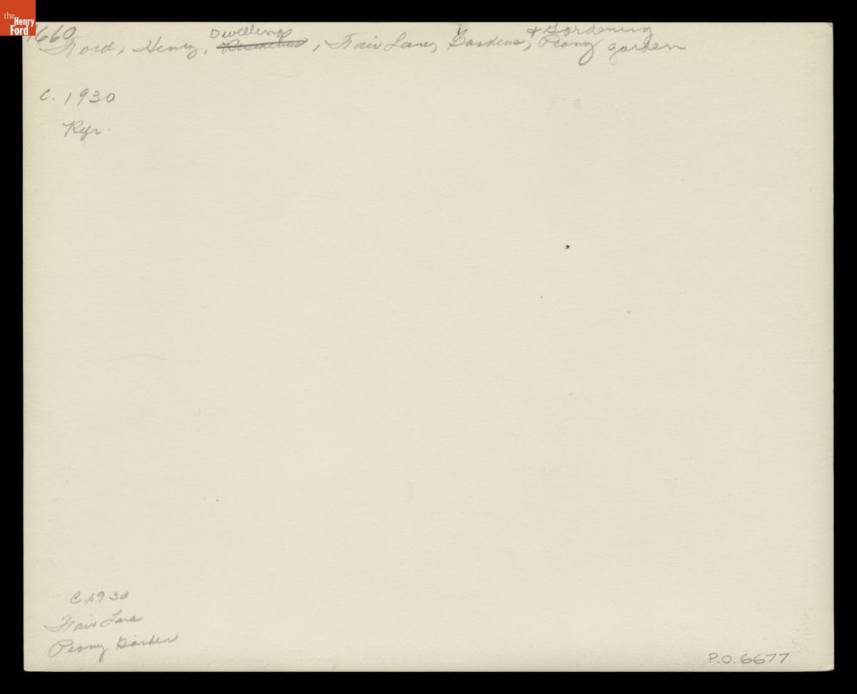 In the early 1910s, Henry and Clara Ford selected 1300 acres of farmland in Dearborn, Michigan, as the site for a new home. They called the estate Fair Lane. Surrounded by woods, meadows, gardens, and the nature they loved, Henry and Clara found this home a peaceful respite. This image shows one of the gardens created near the house for the couple to enjoy.