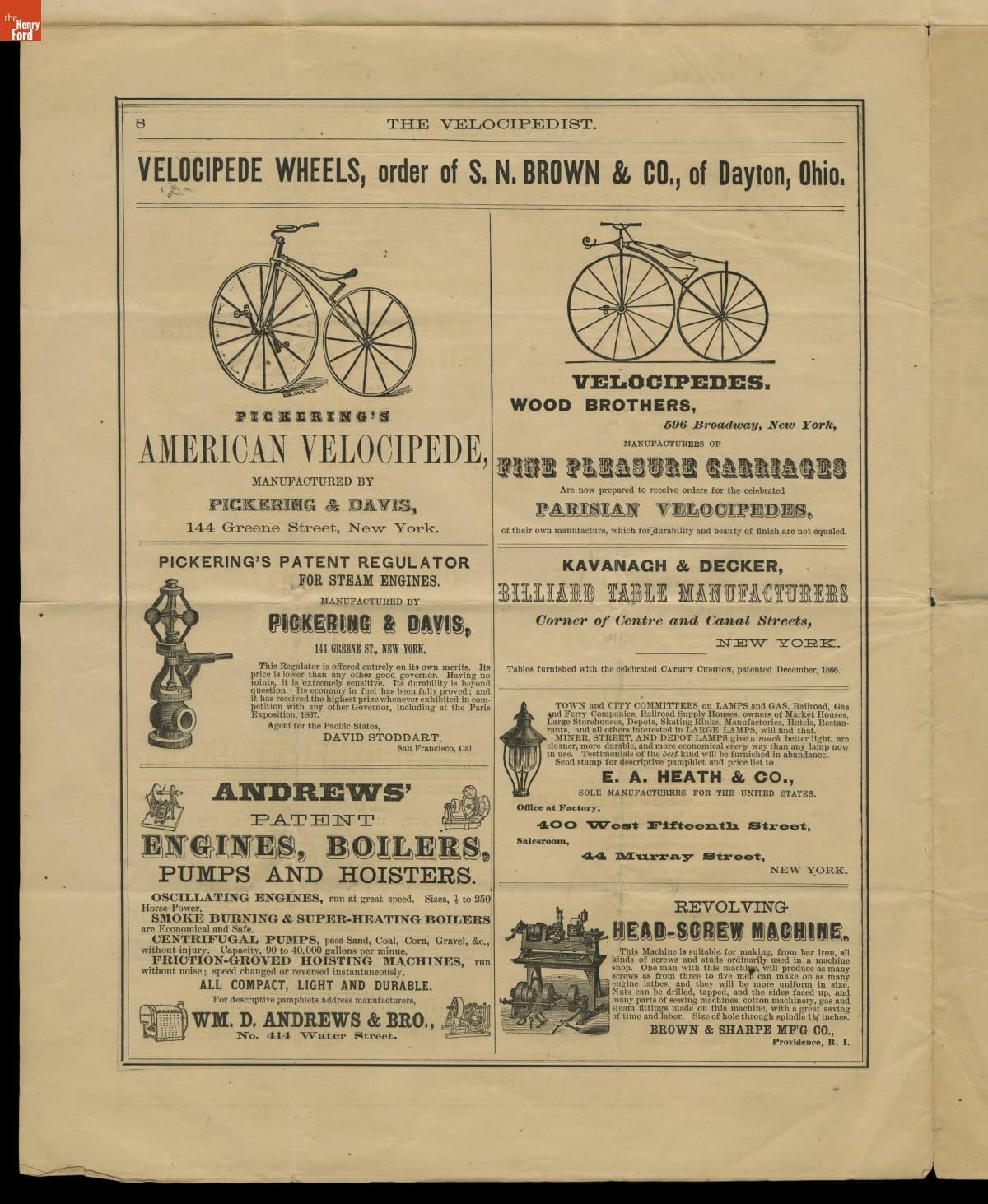 The first forerunners to the bicycle appeared in the 1810s. These two-wheeled vehicles were commonly called velocipedes -- an adaptation of the Latin phrase "velox pedis," meaning "swift of foot." The earliest versions had no pedals or drive mechanisms. Riders simply scooted along using foot power. By 1869 velocipedes were popular enough to inspire the publication of The Velocipedist magazine.
