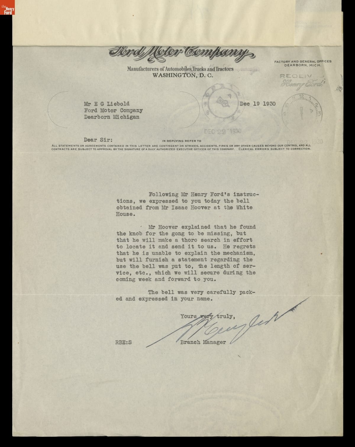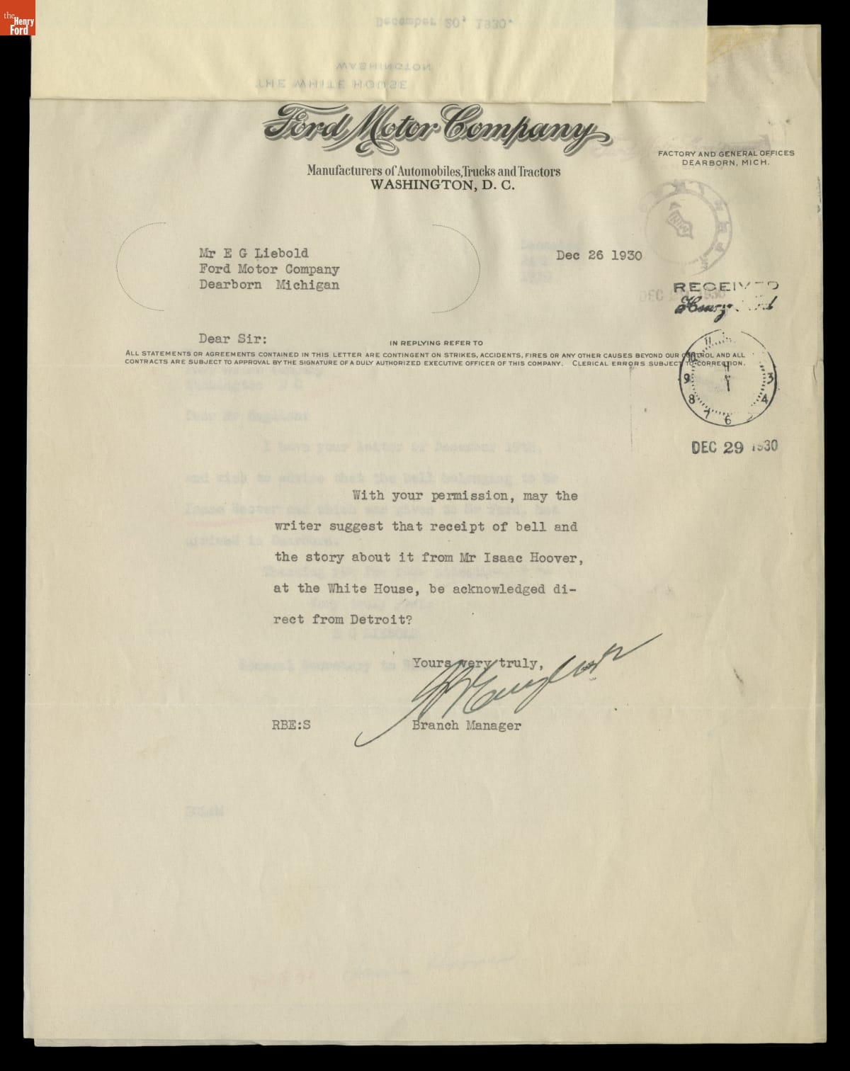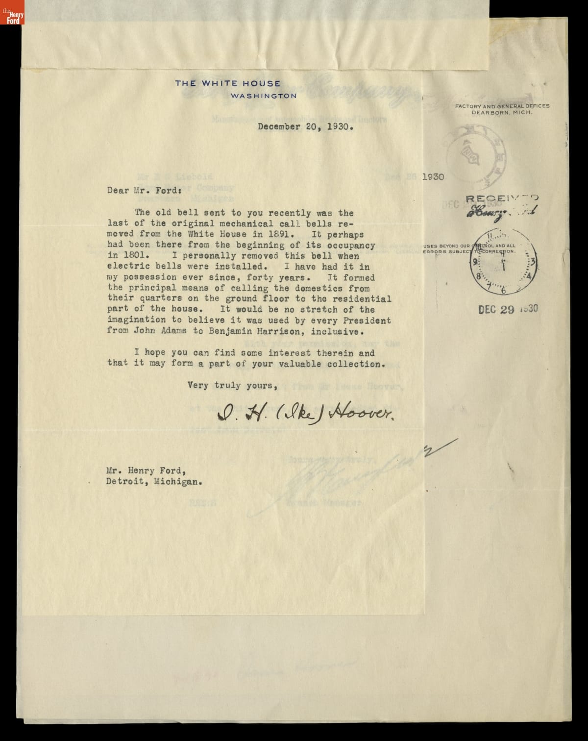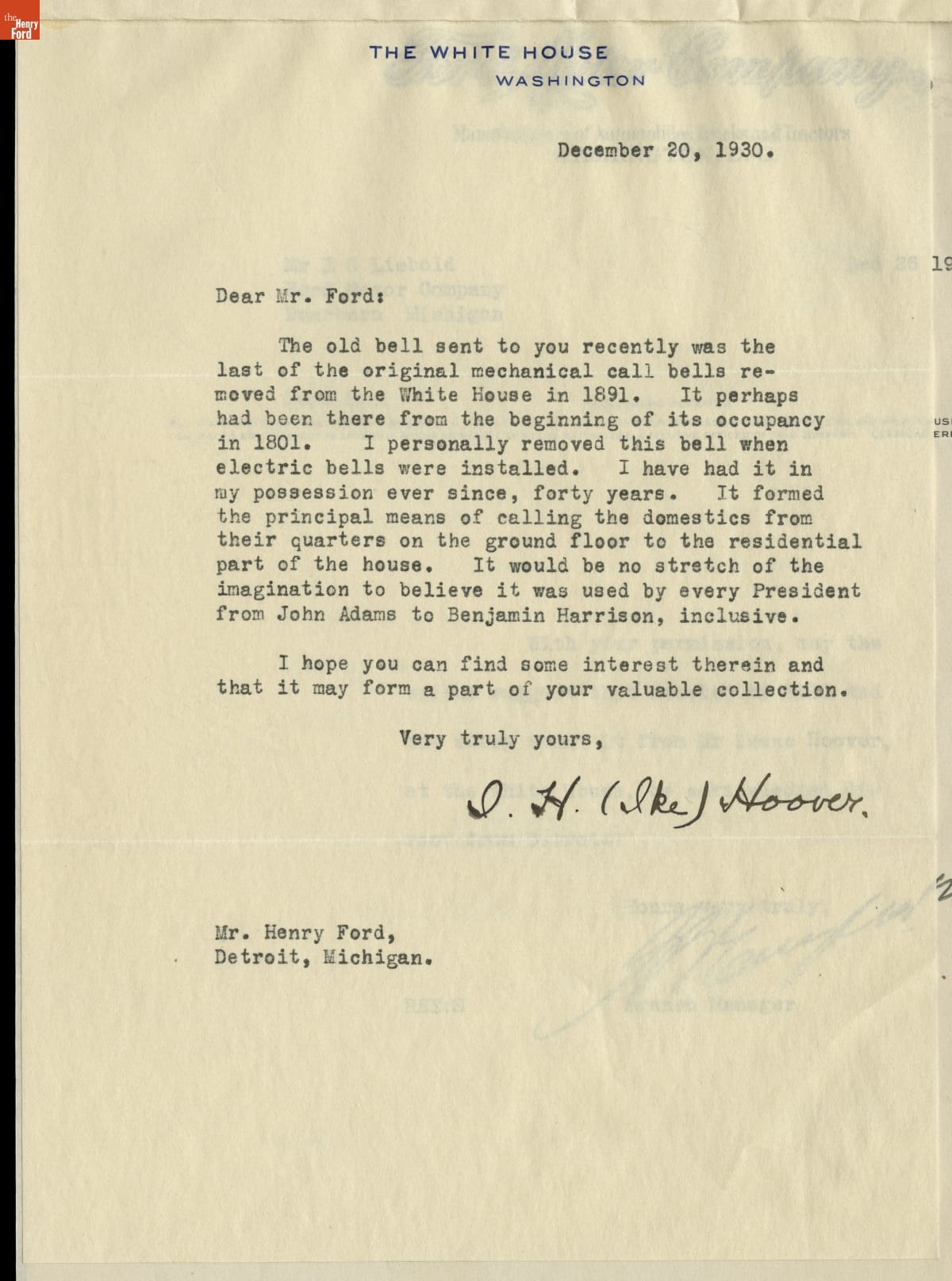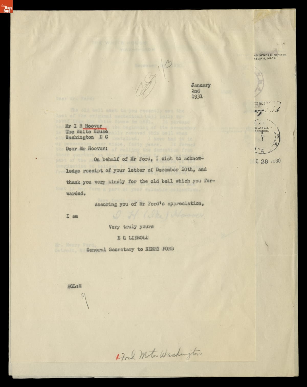 Correspondence Between the White House and the Office of Henry Ford, 1930-1931