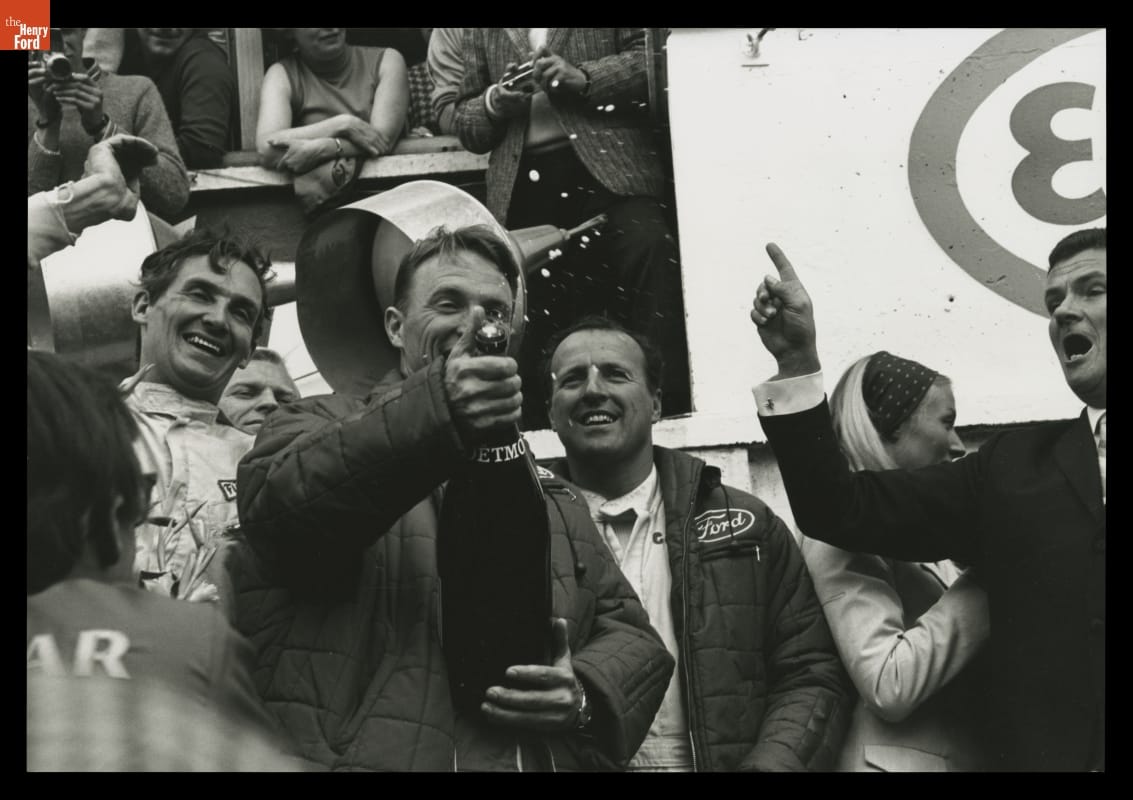 Caught up in the excitement of winning the 1967 24 Hours of Le Mans race, driver Dan Gurney vigorously shook his champagne bottle and sprayed the sparkling wine over everyone within reach. "It was like a fire hose," Gurney later said, "and they were loving it." Gurney's spontaneous celebration started what is now a victory tradition.