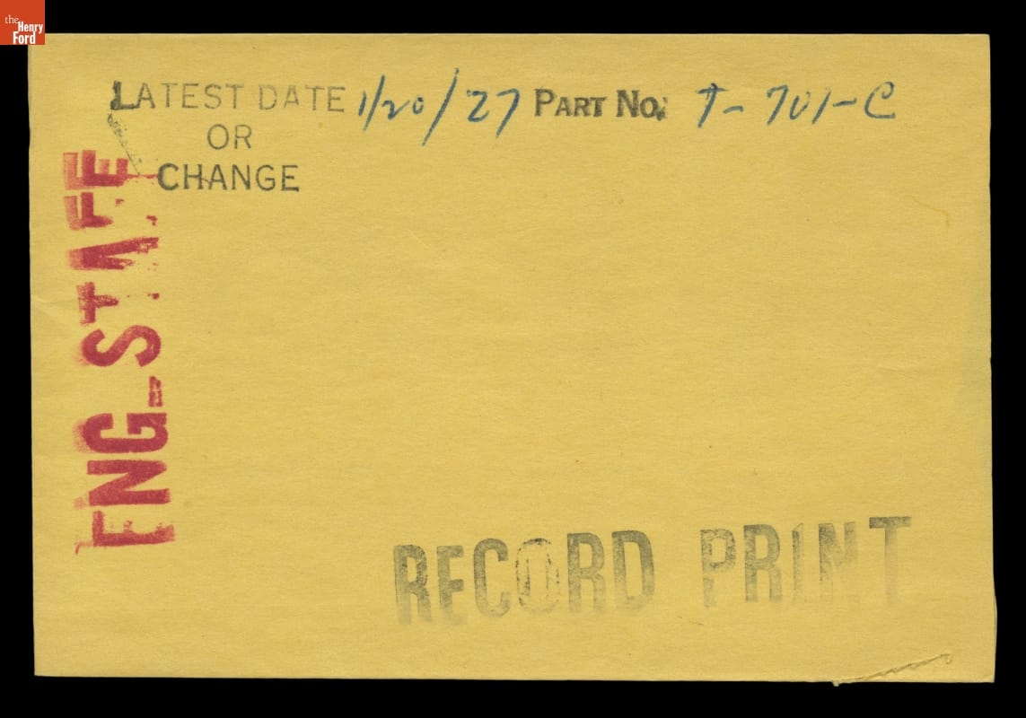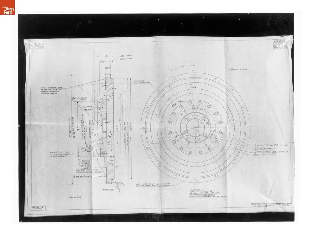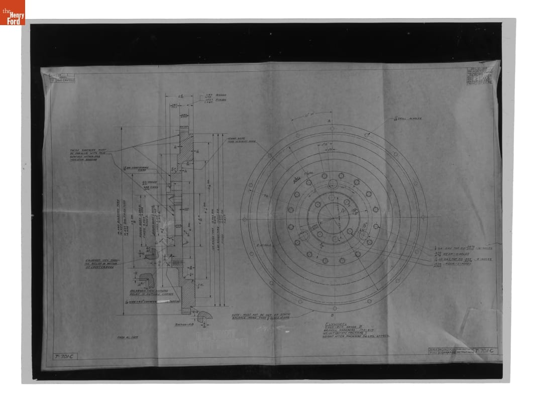 The Ford Motor Company created over a million parts drawings from 1903 to 1957. Many of these drawings specify engineering requirements for the components of Ford-made vehicles--including automobiles, trucks, tractors, military vehicles and Tri-motor airplanes. Others document assembly components, stages of casting and forging, or experimental designs. Beginning in the 1940s, Ford transferred the drawings to microfilm.