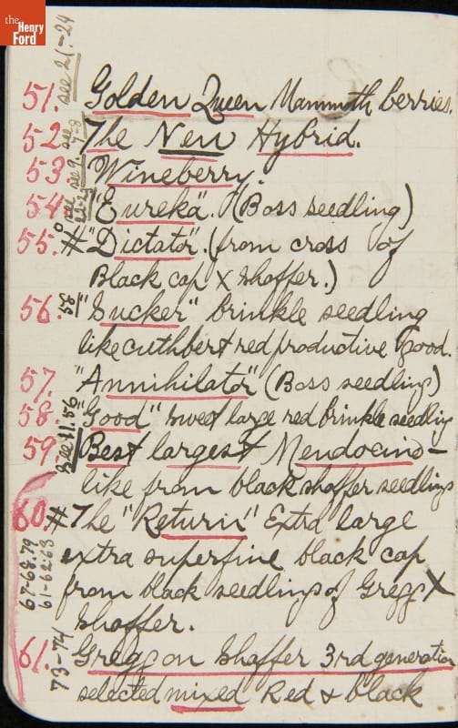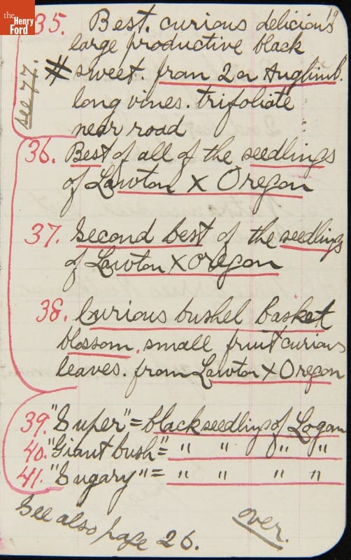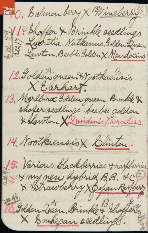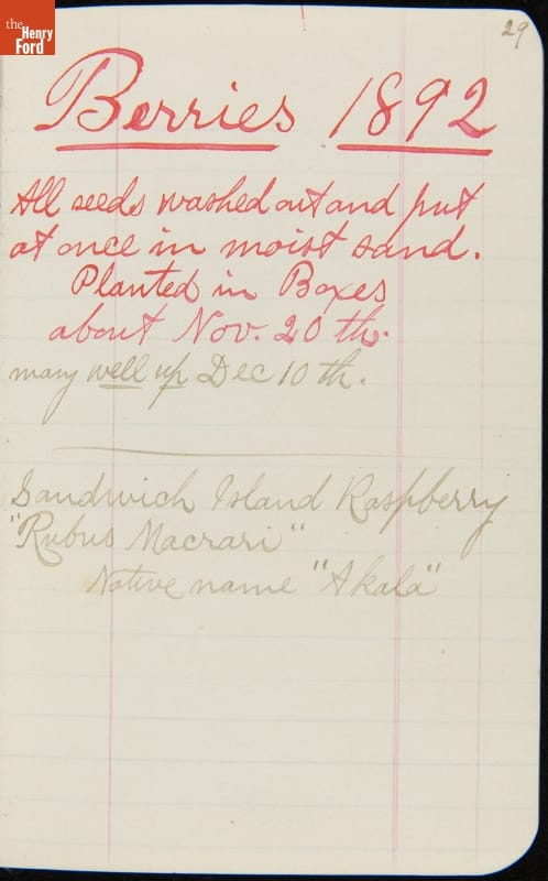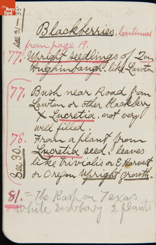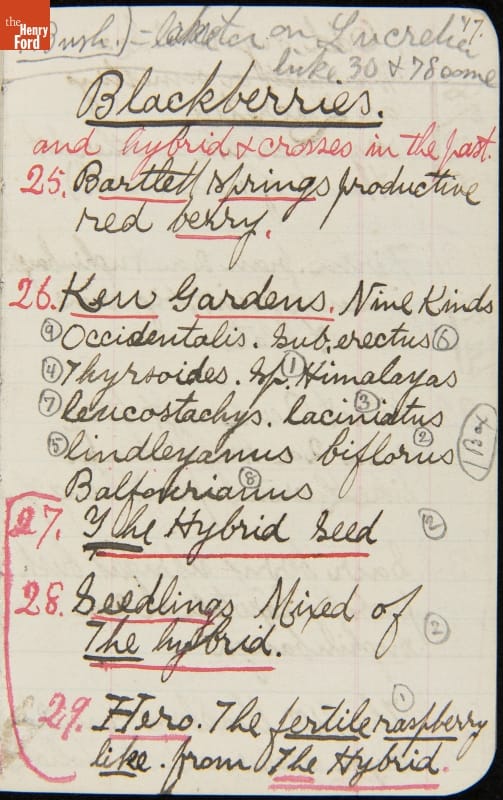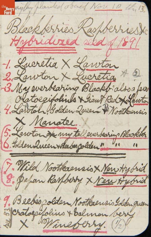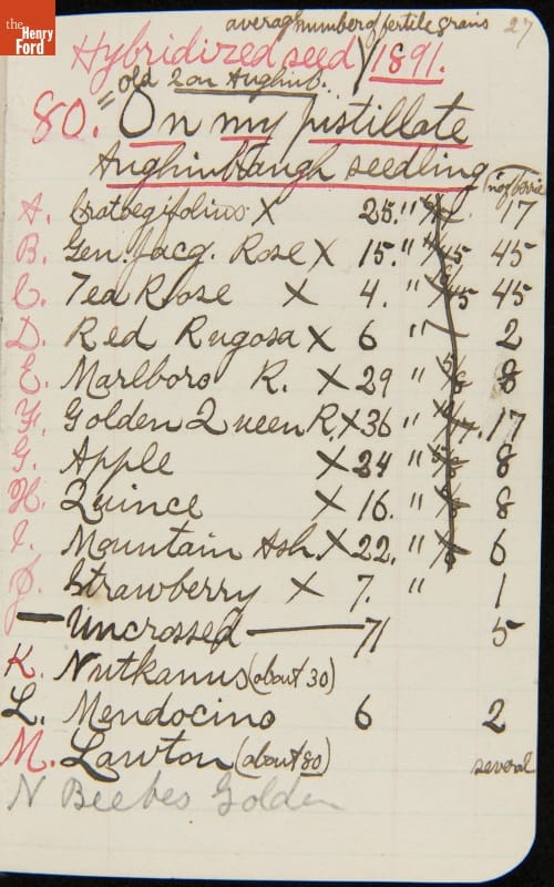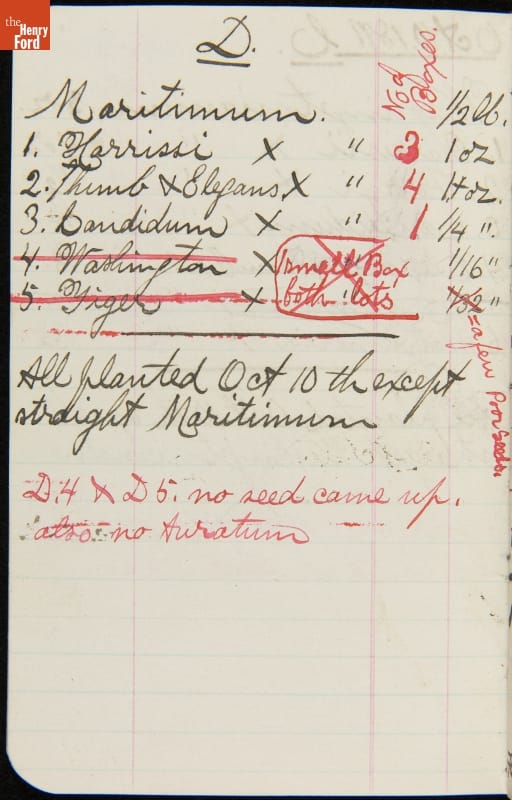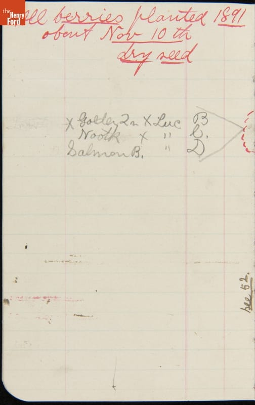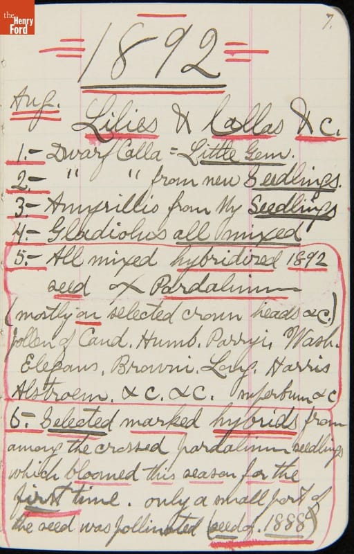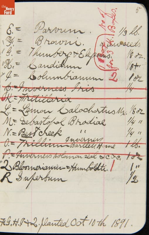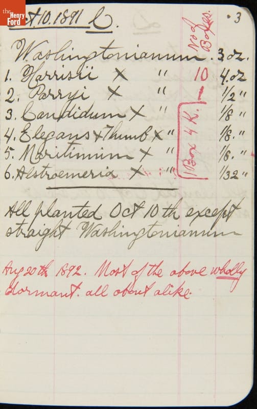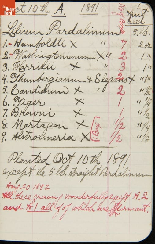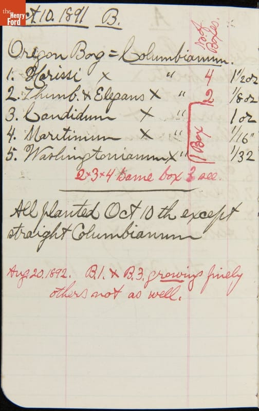Luther Burbank Notebook, "Lily Seeds &c., Planted Oct. 1891"