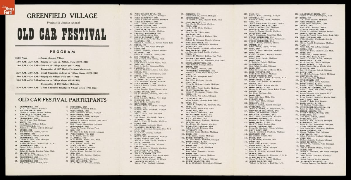 Program, "Old Car Festival at Greenfield Village," September 7, 1957