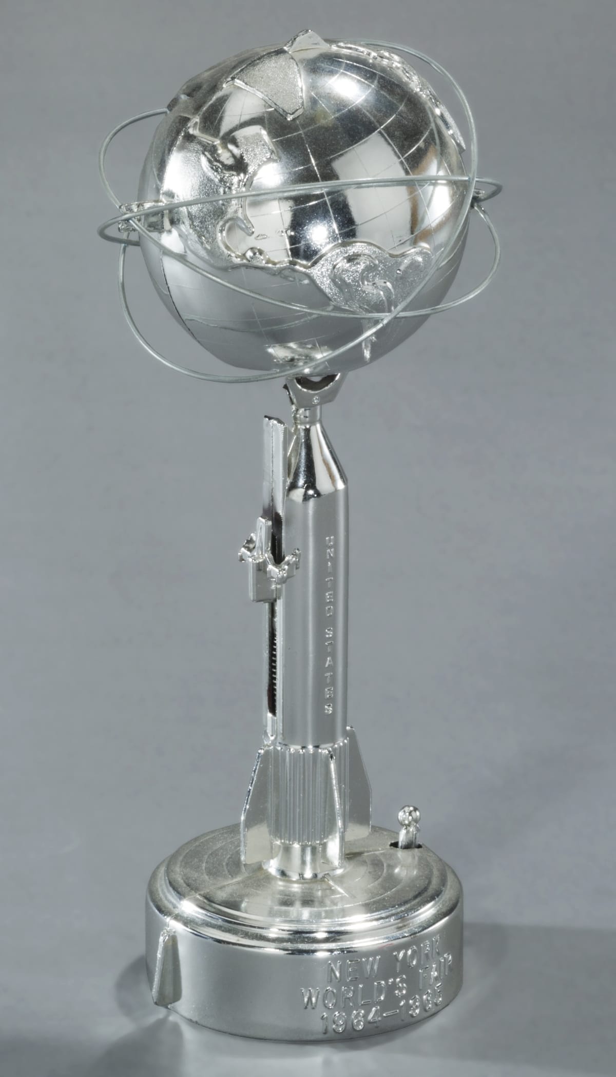 UNISPHERE / PRESENTED BY / USS / UNITED STATES STEEL / (C) 1961 NEW YORK WORLD'S FAIR 1964-1965 CORPORATION / MFG. BY / RMS SALES CORP. / EAST ORANGE, N.J.