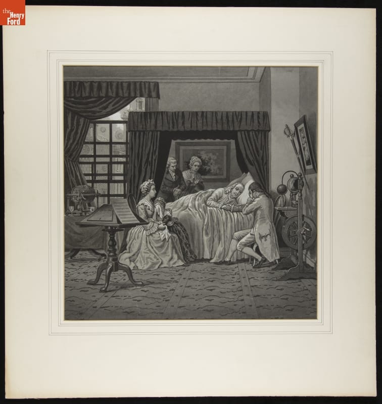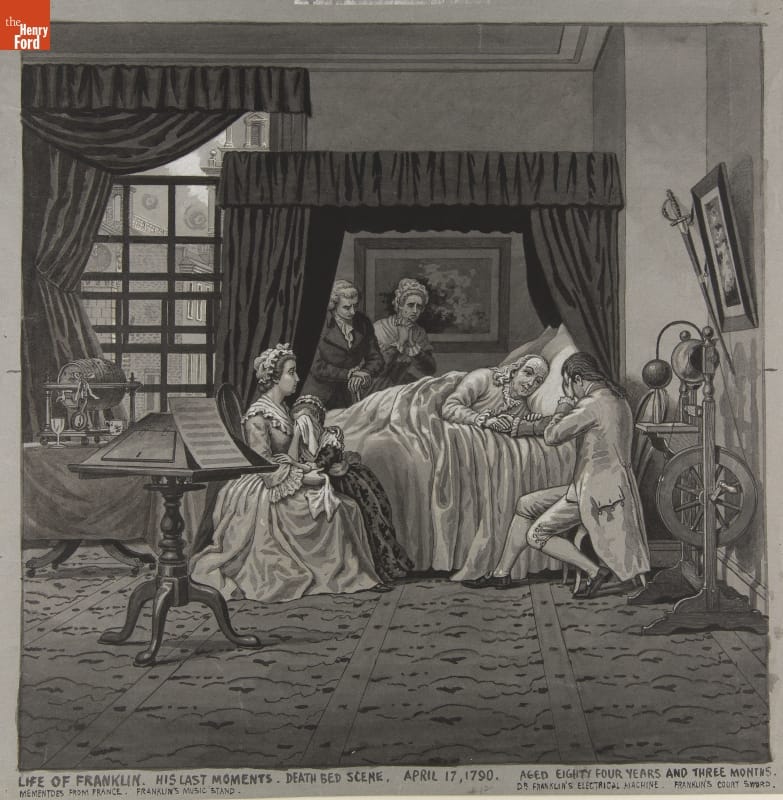 THF289384 / Benjamin Franklin's Last Moments, Death Bed Scene, Drawn for a Magic Lantern Slide, 1902-1903