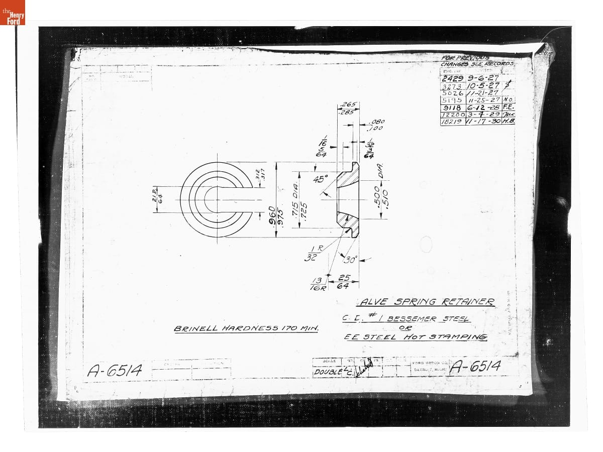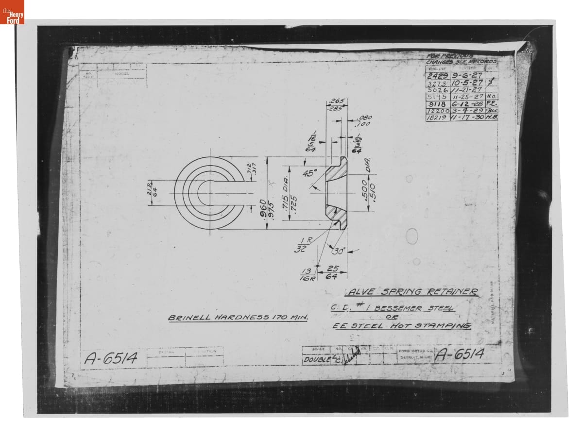 Drawing, "Valve Spring Retainer," Ford Model A, November 17, 1930