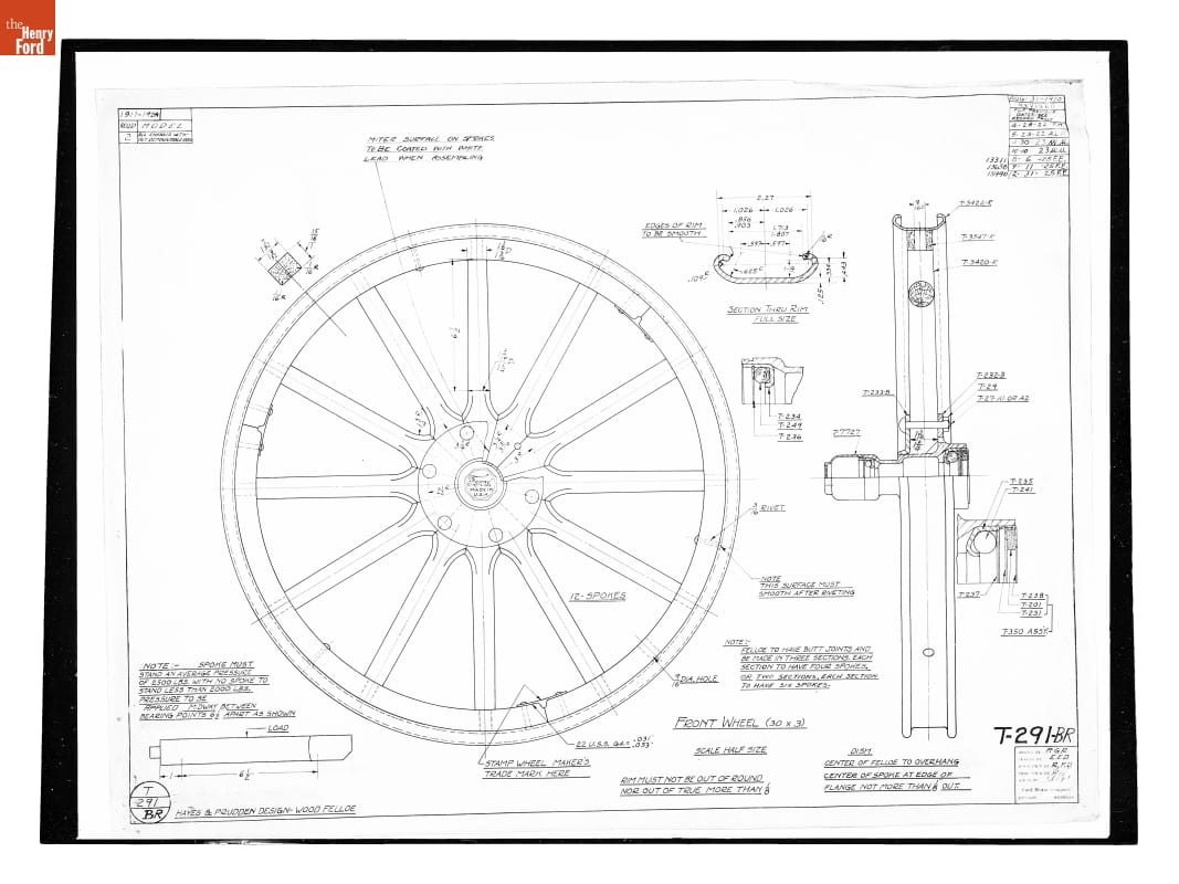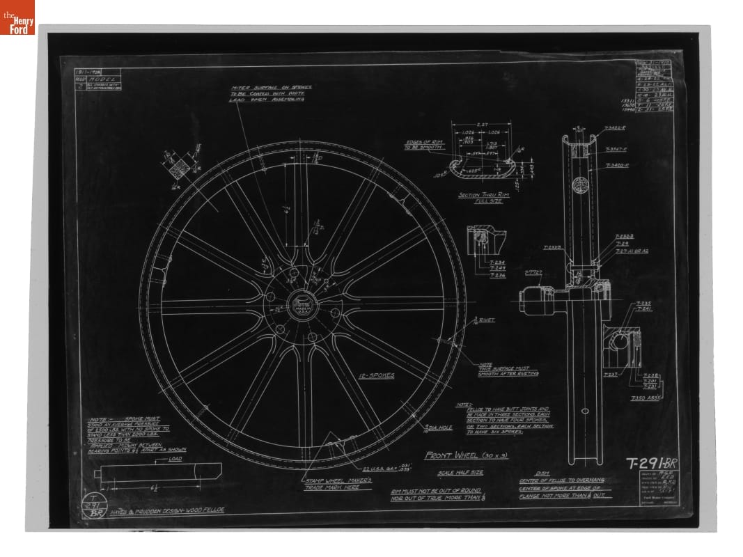 Drawing, "Front Wheel (30 x 3)," Ford Model T, December 31, 1925
