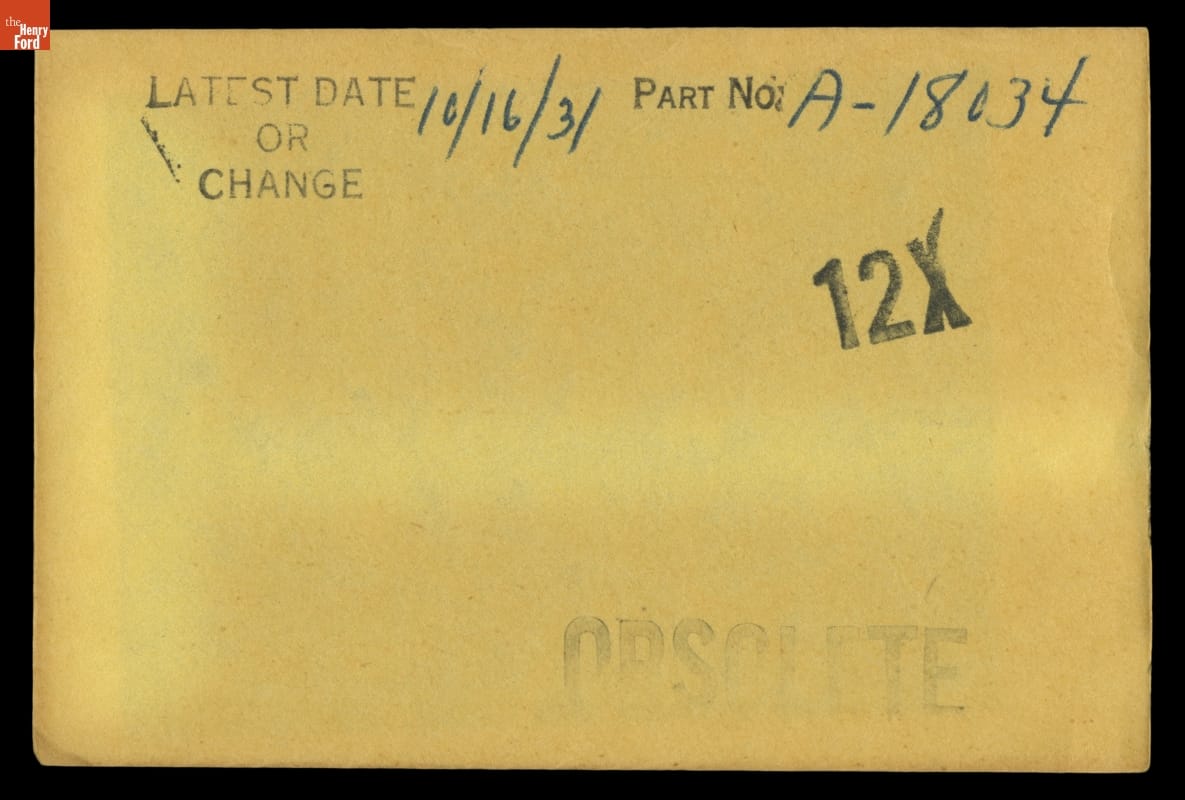 The Ford Motor Company created over a million parts drawings from 1903 to 1957. Many of these drawings specify engineering requirements for the components of Ford-made vehicles--including automobiles, trucks, tractors, military vehicles and Tri-motor airplanes. Others document assembly components, stages of casting and forging, or experimental designs. Beginning in the 1940s, Ford transferred the drawings to microfilm.