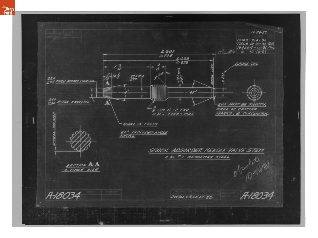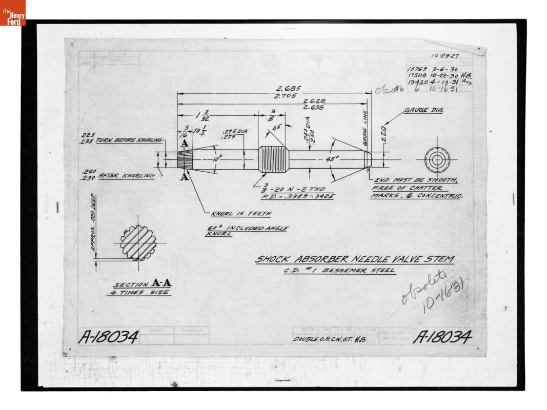Drawing, "Shock Absorber Needle Valve Stem," Ford Model A, October 16, 1931