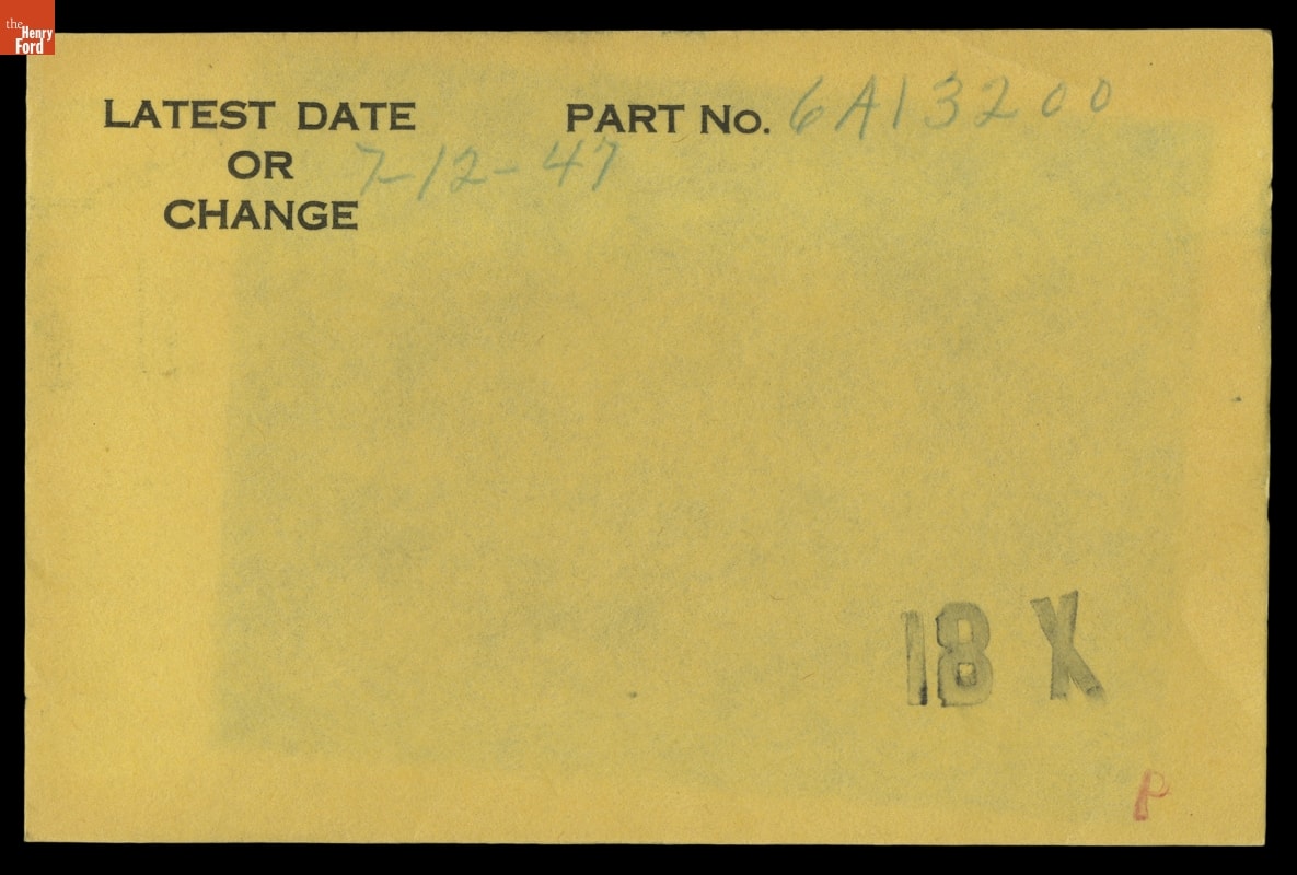 The Ford Motor Company created over a million parts drawings from 1903 to 1957. Many of these drawings specify engineering requirements for the components of Ford-made vehicles--including automobiles, trucks, tractors, military vehicles and Tri-motor airplanes. Others document assembly components, stages of casting and forging, or experimental designs. Beginning in the 1940s, Ford transferred the drawings to microfilm.
