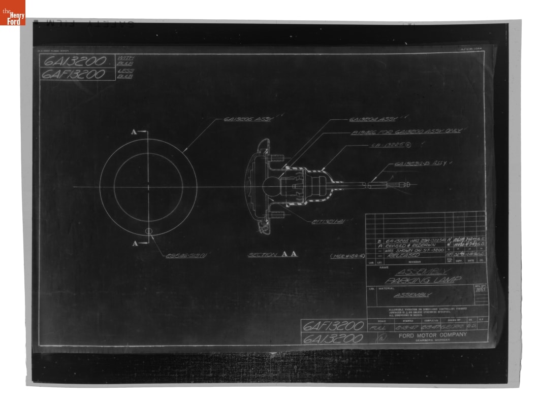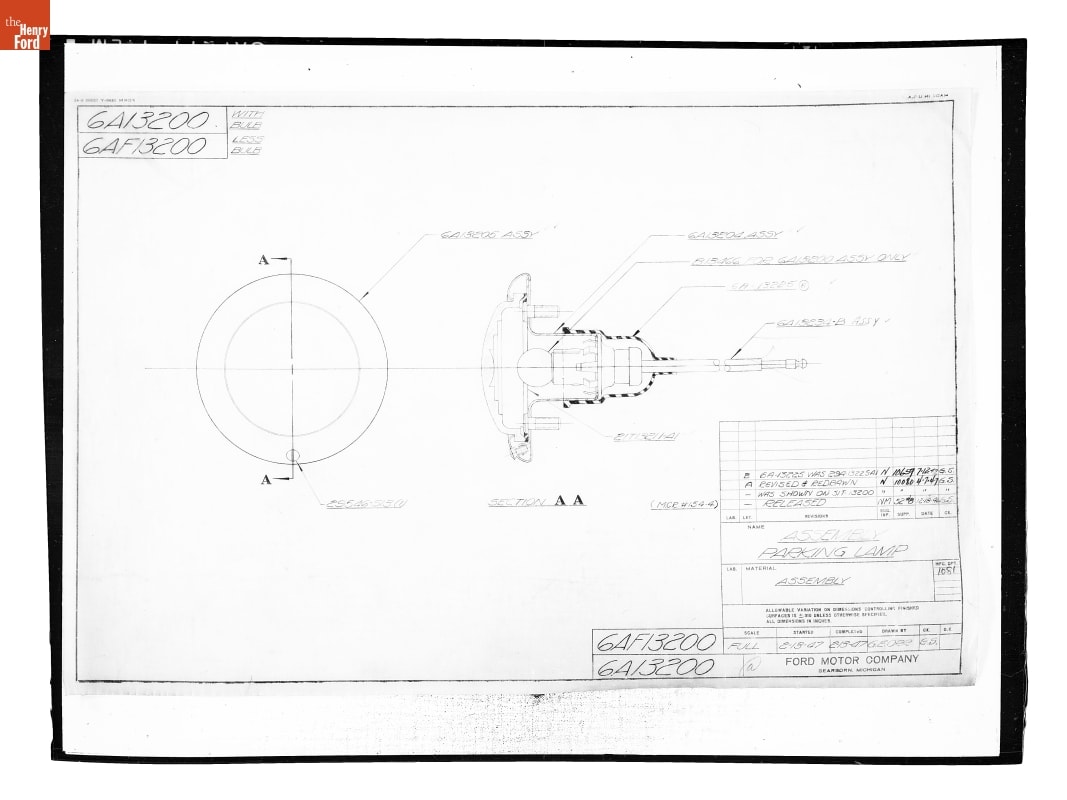 Drawing, "Assembly Parking Lamp," Ford Automobile, July 12, 1947