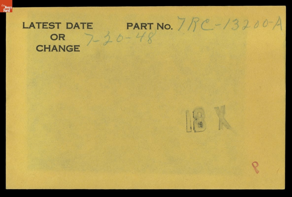 The Ford Motor Company created over a million parts drawings from 1903 to 1957. Many of these drawings specify engineering requirements for the components of Ford-made vehicles--including automobiles, trucks, tractors, military vehicles and Tri-motor airplanes. Others document assembly components, stages of casting and forging, or experimental designs. Beginning in the 1940s, Ford transferred the drawings to microfilm.