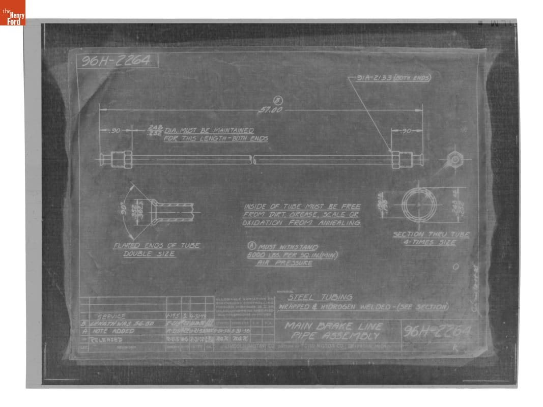 Drawing, "Main Brake Line Pipe Assembly," Ford Automobile, April 30, 1948