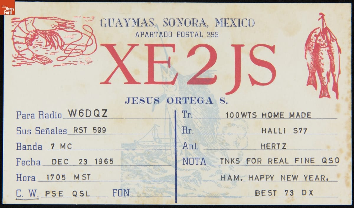 QSL Card from XE2JS (Guaymas, Sonora, Mexico) to W6DQZ (Hamid Durmisevich, Los Angeles, California), December 23, 1965
