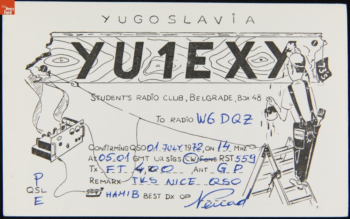 QSL Card from YU1EXY (Belgrade, Yugoslavia) to W6DQZ (Hamid Durmisevich, Los Angeles, California), July 1, 1972