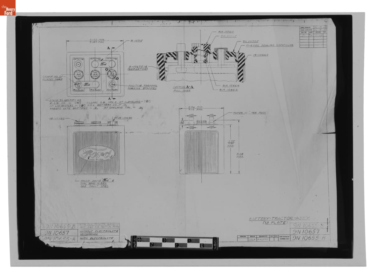 Drawing, "Battery - Tractor - Ass'y," Ford Tractor, December 21, 1939
