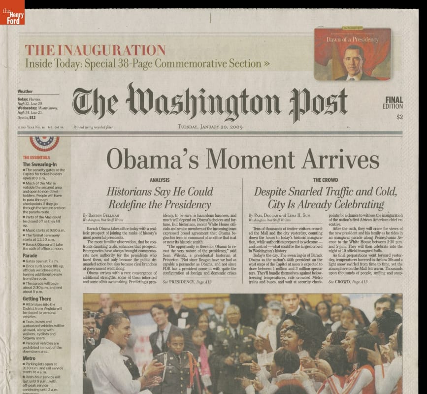 The Washington Post Newspaper for Tuesday, January 20, 2009 "Obama's Moment Arrives"