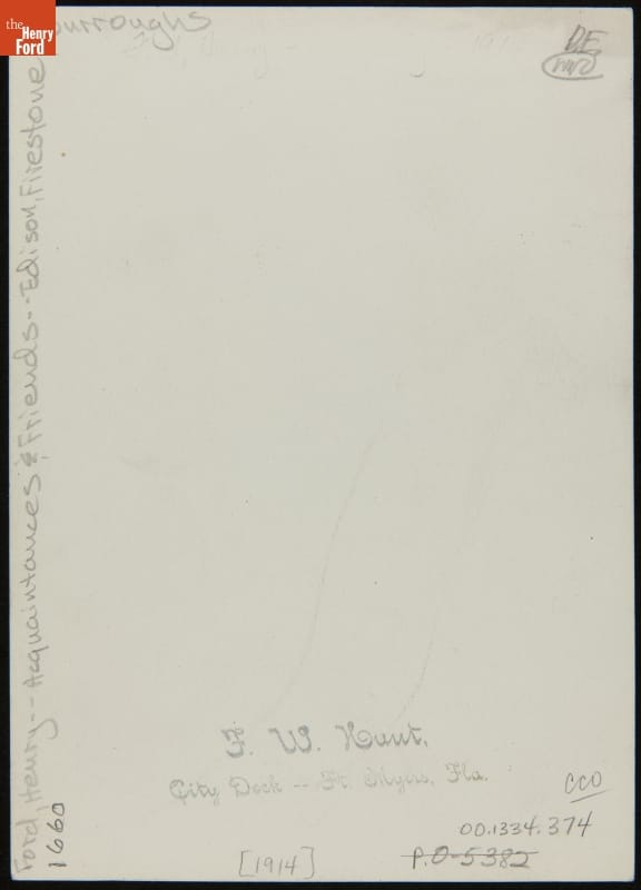 John Burroughs (1837-1921) was an internationally known naturalist and writer. His writings appealed to Henry Ford, who invited Burroughs in 1914 to join him and Thomas Edison to explore the Florida Everglades together. This led to the more famous Vagabond camping trips of a few years later, which also involved Harvey Firestone.