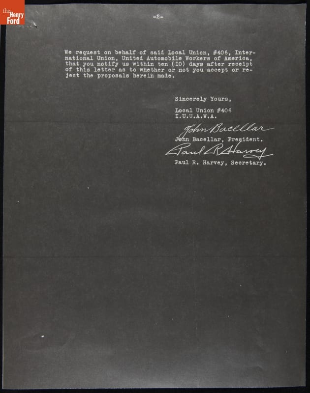 Letter from UAW #406 to Edsel Ford to Request Collective Bargaining, September 16, 1938
