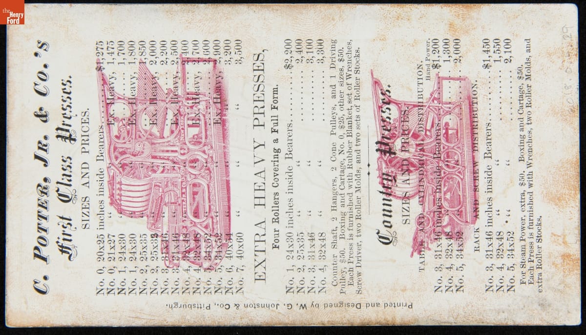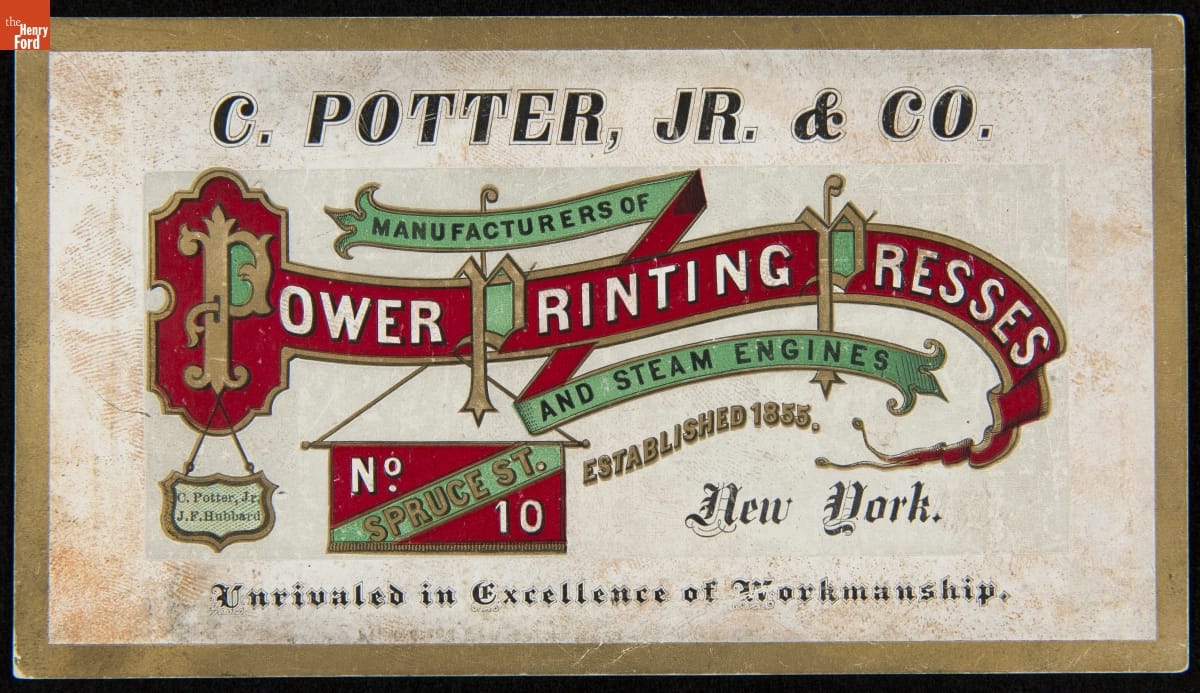 "C. Potter, Jr. & Co. Manufacturers of Power Printing Presses and Steam Engines," circa 1890