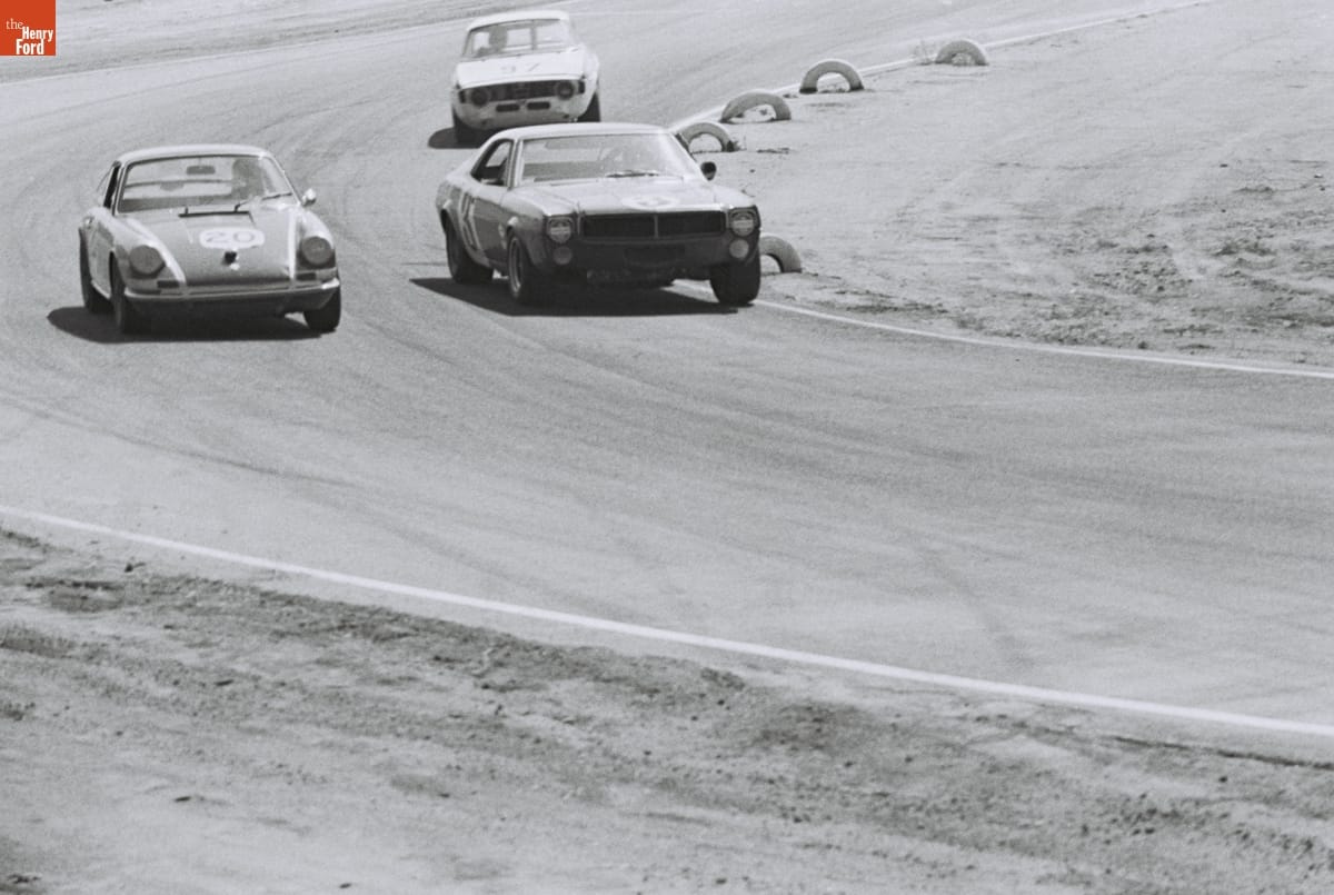 Dave Friedman captured and preserved auto racing history through his photography. His work -- and his collection of works by other photographers -- documents key races, cars, drivers, and teams. This photo was taken at the Mission Bell 250, a Trans-Am race at California's Riverside International Raceway on September 8, 1968. Horst Kwech won with the #2 Ford Mustang from Shelby Racing.