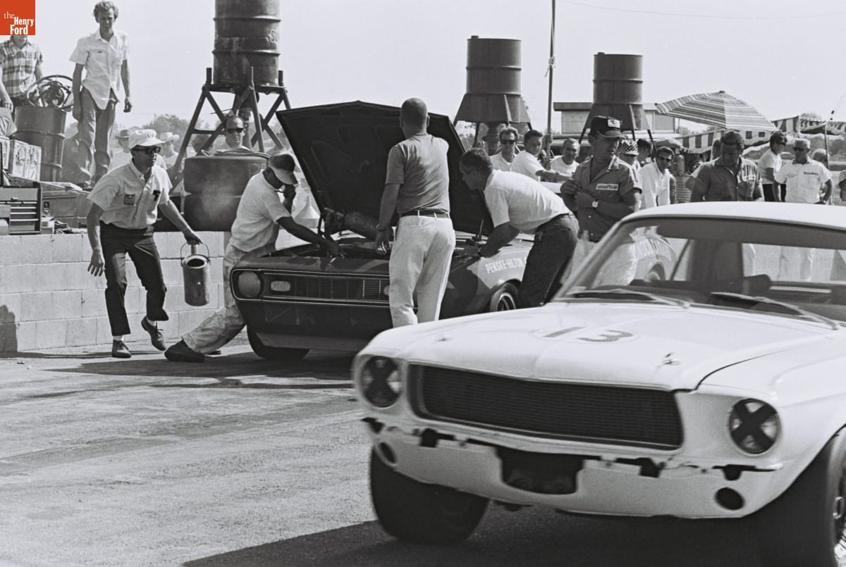 Dave Friedman captured and preserved auto racing history through his photography. His work -- and his collection of works by other photographers -- documents key races, cars, drivers, and teams. This photo was taken at the Mission Bell 250, a Trans-Am race at California's Riverside International Raceway on September 8, 1968. Horst Kwech won with the #2 Ford Mustang from Shelby Racing.
