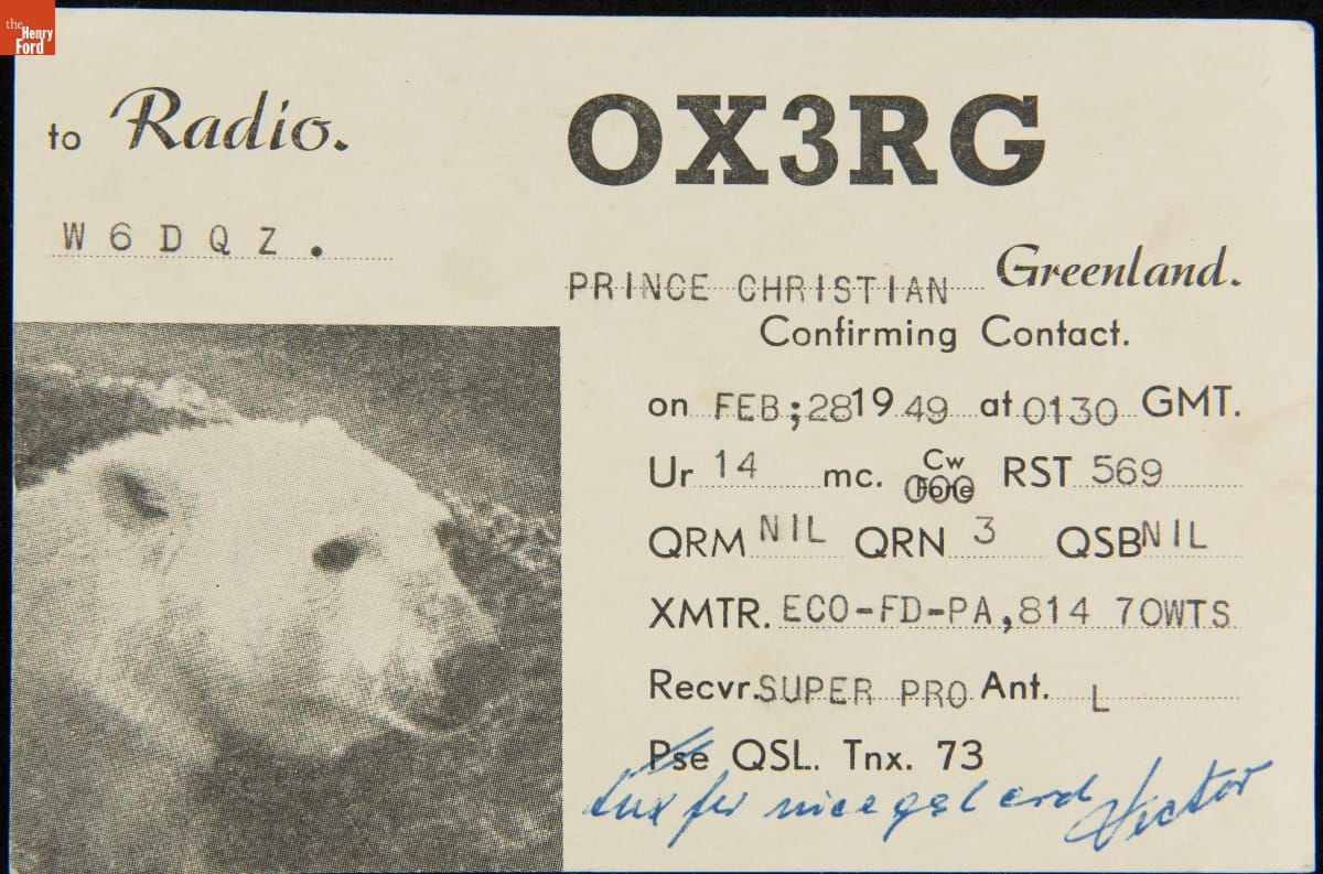 QSL Card from OX3RG (Prince Christian, Greenland) to W6DQZ (Hamid Durmisevich, Los Angeles, California), February 28, 1949
