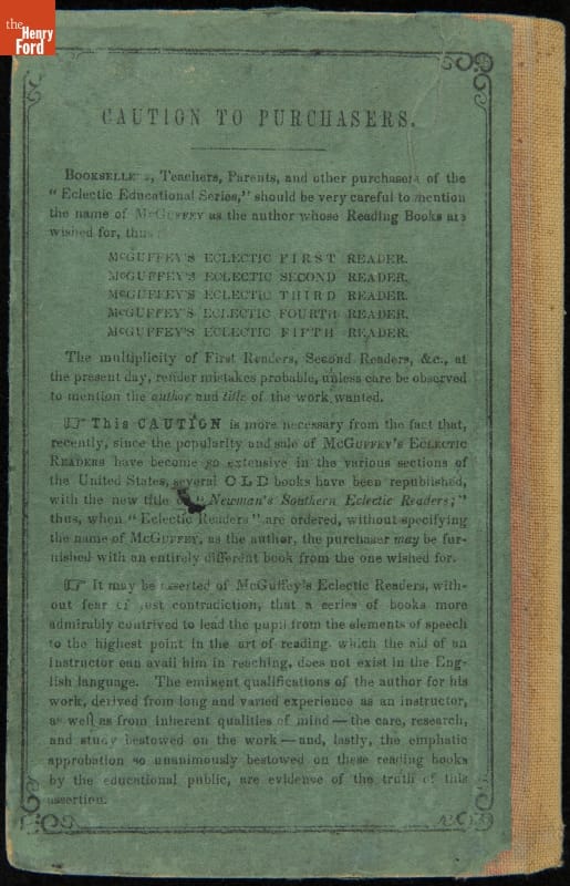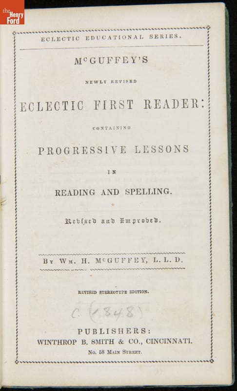 Textbook, "McGuffey's Newly Revised Eclectic First Reader," 1848