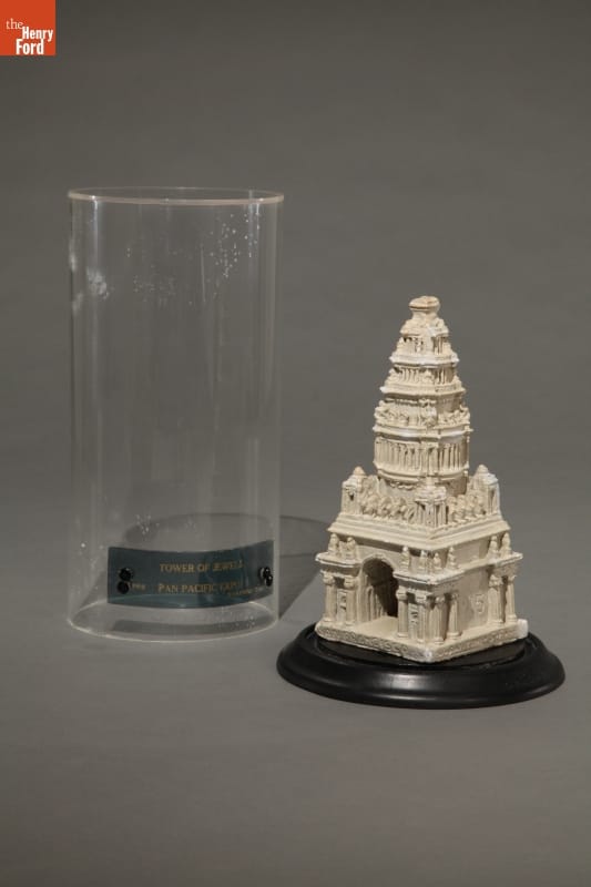 The Panama-Pacific International Exposition celebrated the 1914 completion of the Panama Canal and the 400th anniversary of the discovery of the Pacific Ocean. Nearly nineteen million people visited San Francisco, recently recovered from a devastating 1906 earthquake, during the fair in 1915. Many returned home with mementos, such as this souvenir replica of the exhibition's popular Tower of Jewels.