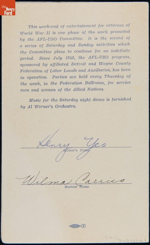 From the Collections of The Henry Ford. Gift of Wilma Carrico Head.