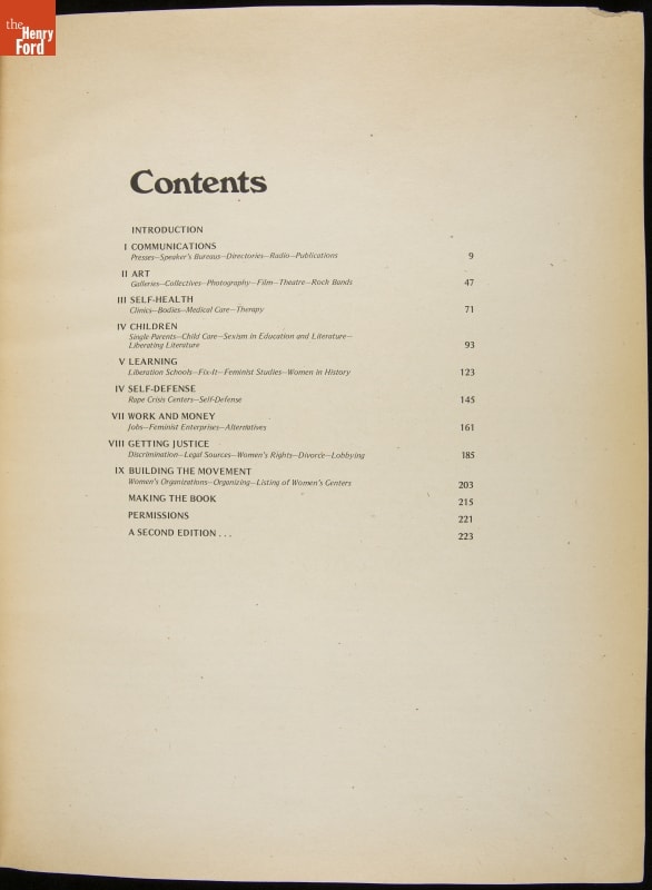 This book is a directory of grassroots resources for women in the 1970s: female-owned bookstores, collectives, women's health, birth control, pay equity, self-defense, crisis support, and single parenting. These types of pre-Internet publications share common ground with today's web--as information clearinghouses, business directories, connecting communities across a large geographic area.