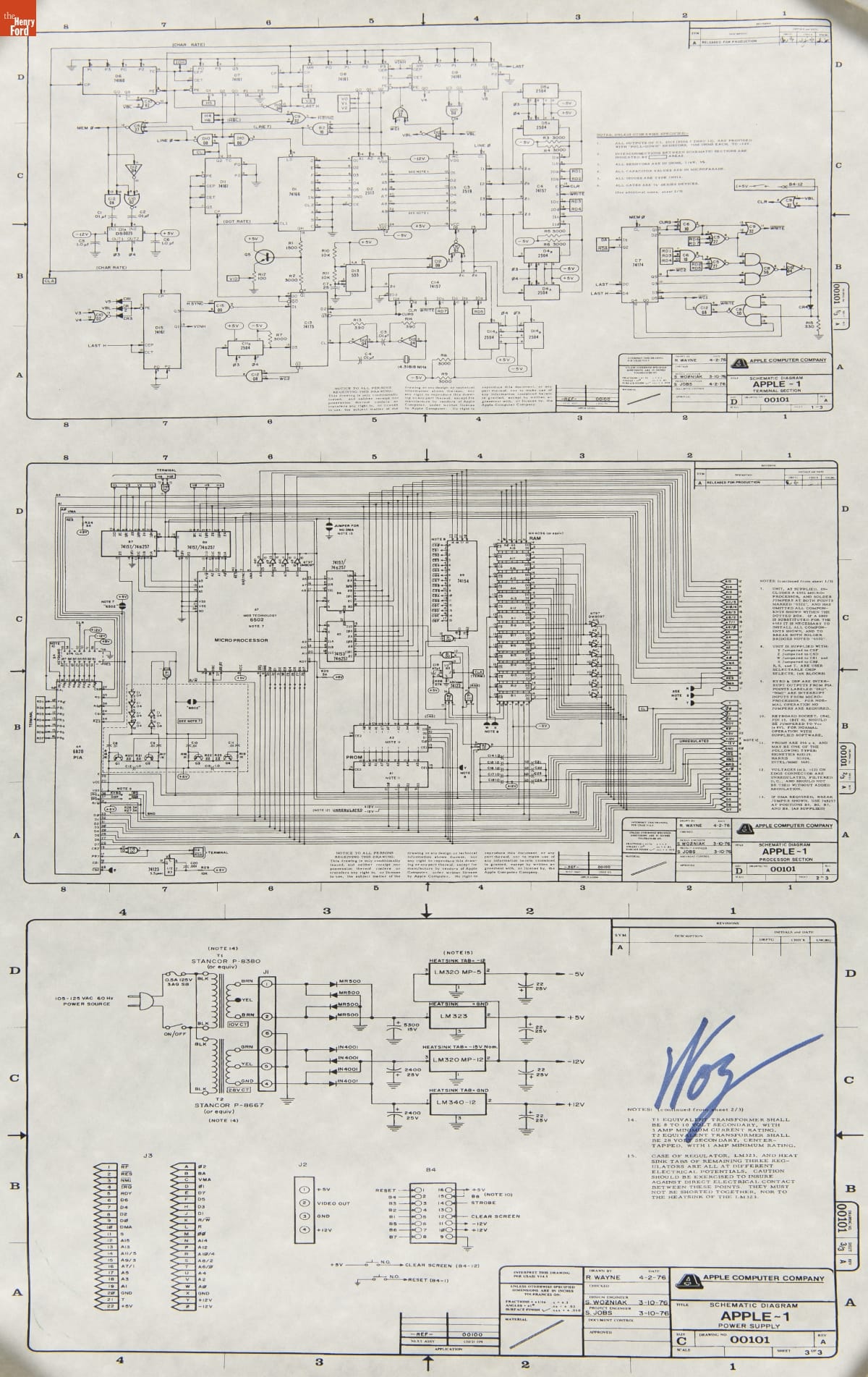 Apple 1 Schematic Diagram, March 10, 1976
