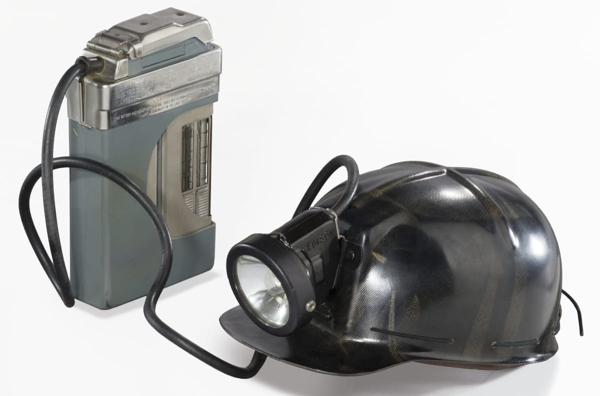 Battery and lamp made by Thomas A. Edison, Inc., West Orange, New Jersey. Helmet made by Mine Safety Appliances Company, Pittsburgh, Pennsylvania.