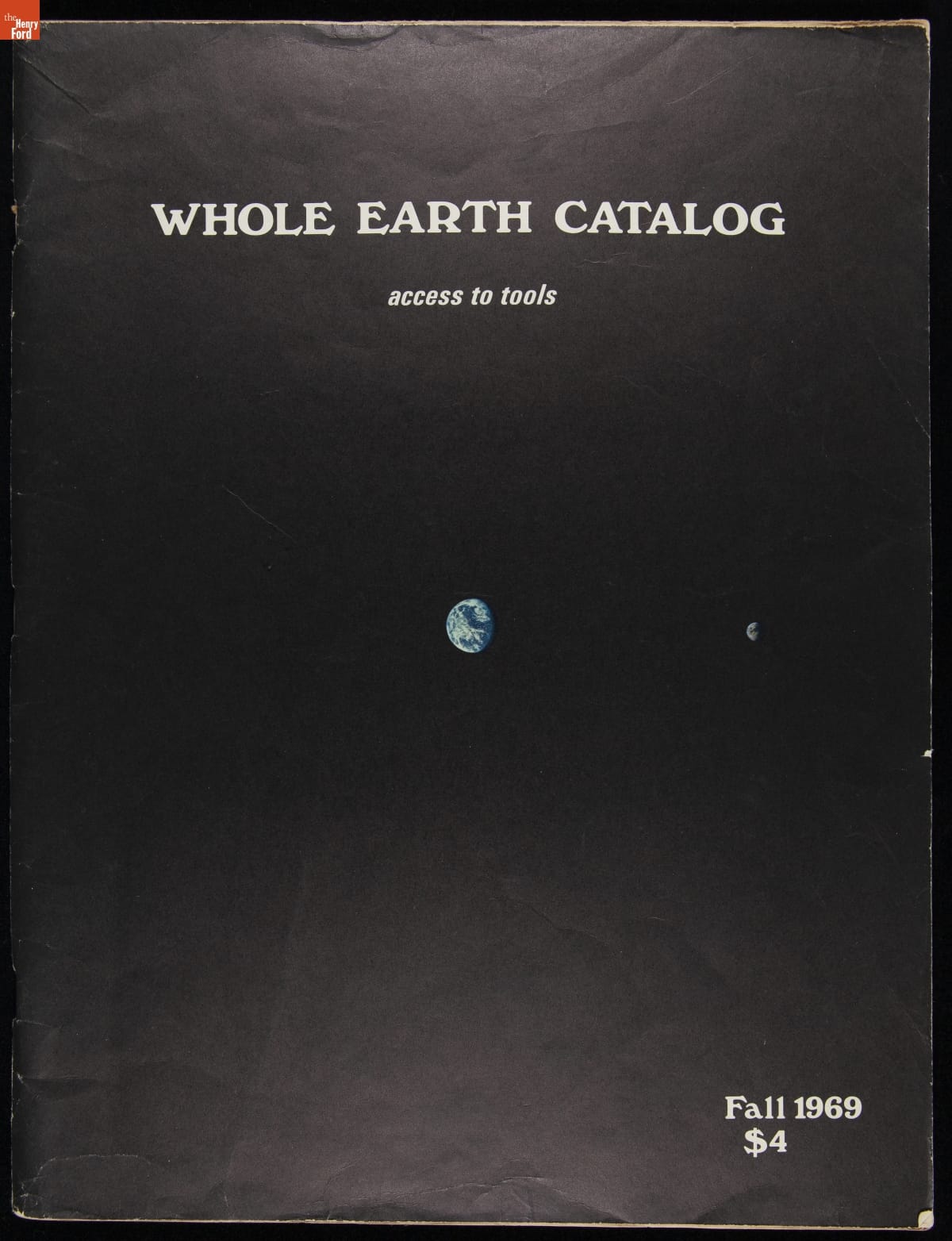 Biologist Steward Brand founded the Whole Earth Catalog in 1968, to connect counterculture and back-to-the-land communities with innovators in the fields of technology, design, and architecture. The cover of each edition, like this from Fall 1969, featured images of earth taken from outer space. Brand believed showing this would change people's perceptions of their responsibility for the globe.