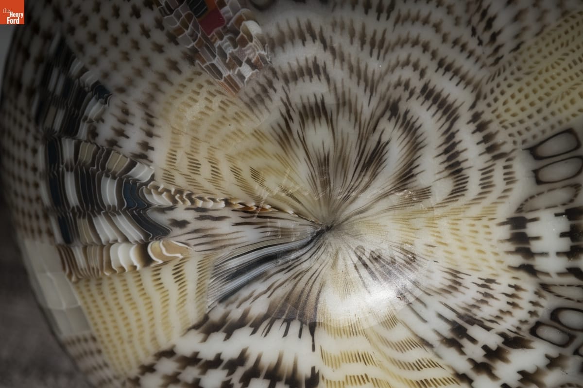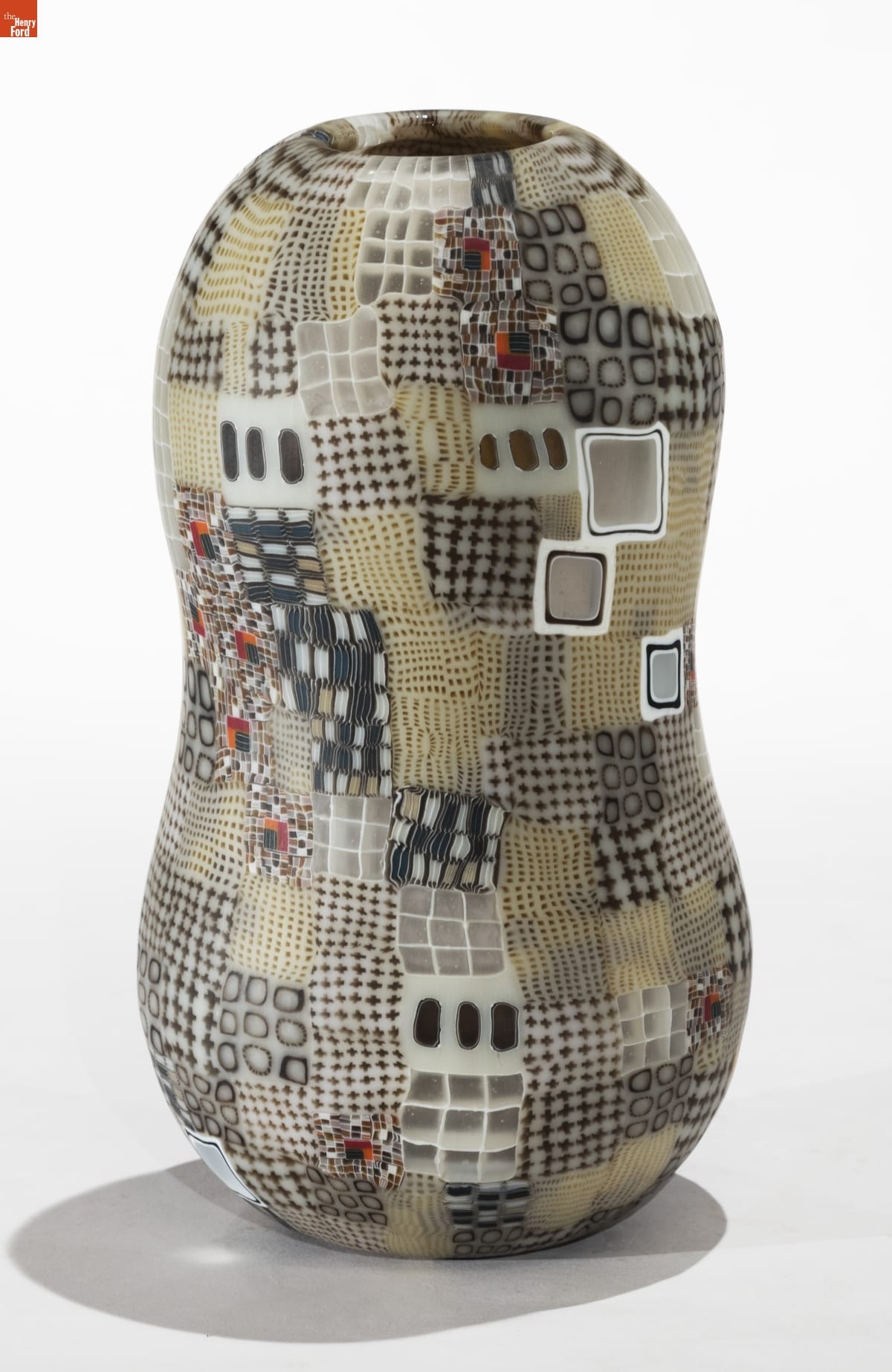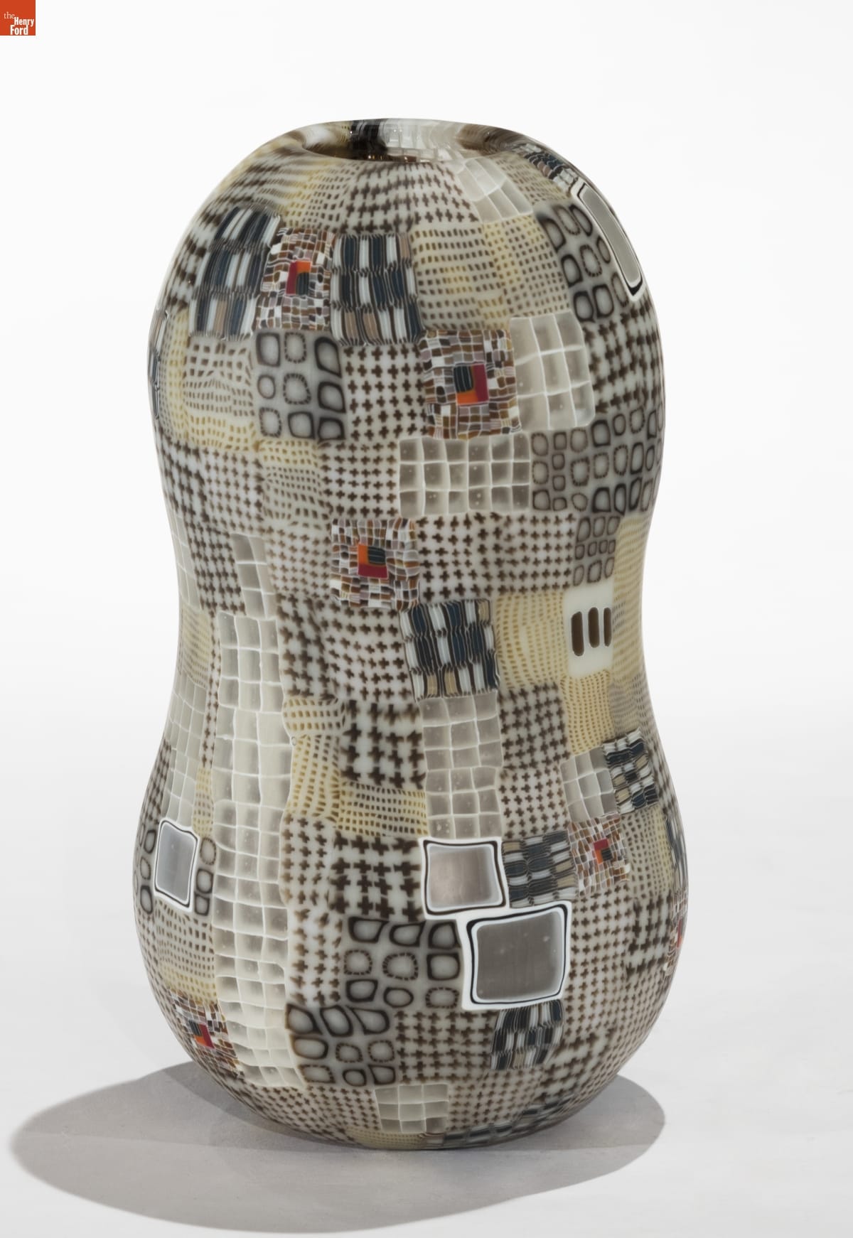Giles Bettison is a master of the Murano "murrini" technique -- the use of cut up canework. Bettison fashioned this vessel using murrini fragments that he created over the past 20 years. As Greenfield Village master glassblower Josh Wojick states, "It is almost like a retrospective of the artist in a single object." Bettison's arrangement of murrini is like the imagery of a painting by the American abstract artist Mark Rothko.