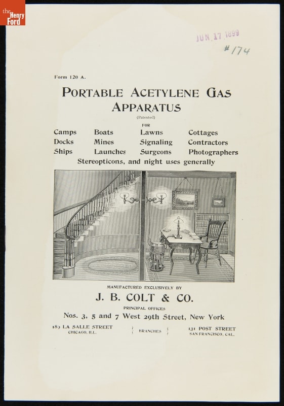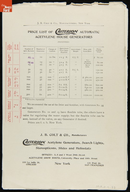 J. B. Colt & Co. Catalog, "Criterion Acetylene Gas Generators for Artificial Lighting," 1899