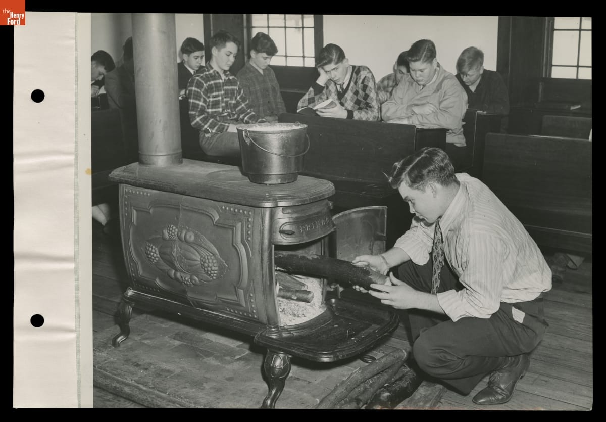 Student Operating Heating Stove at Ford High School, Macon Township, Michigan, January 1946
