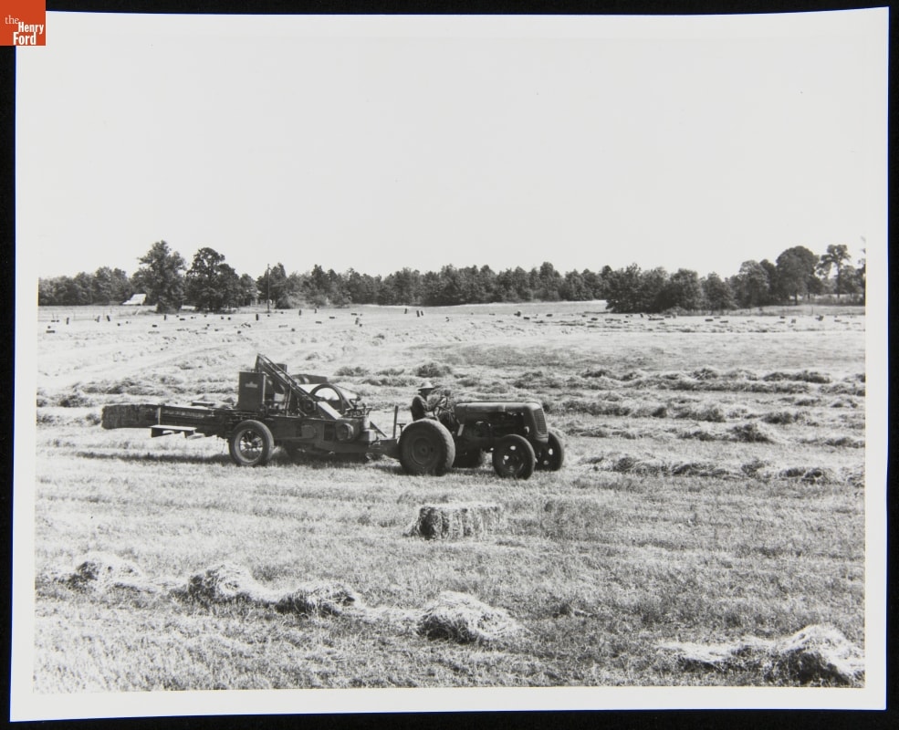 This tractor-drawn baler changed the way farmers made hay. Before pick-up balers, farmers hauled hay to the stationary baler. This baler went to the hayfield where it picked up cured grass, pressed it into rectangular bales, and automatically tied the compressed grasses into a hay bale. Farmers could pick up and move these bales, and they had a higher market value as fresh hay.