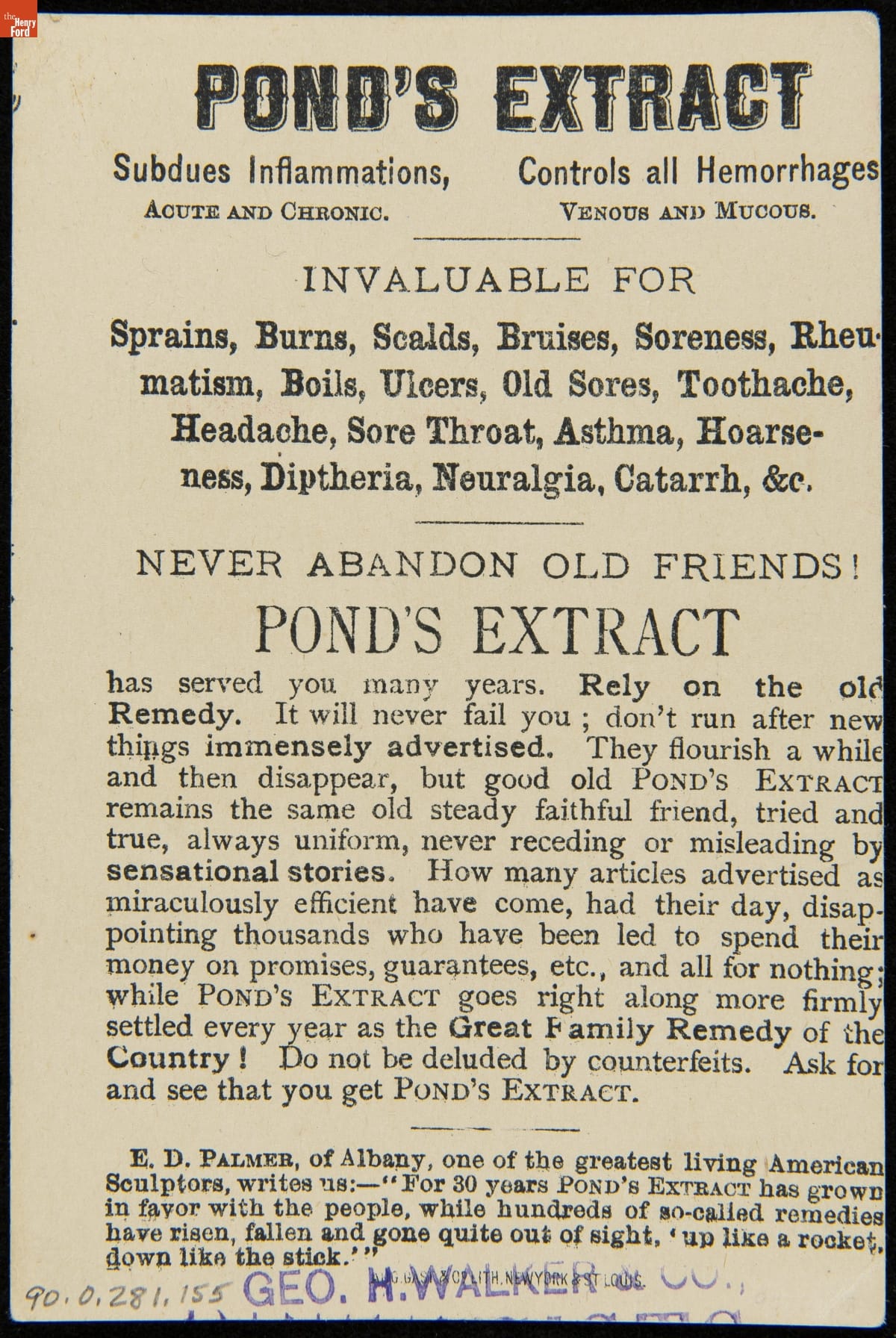 Trade Card for Pond's Extract, Pond's Extract Co., 1886-1910