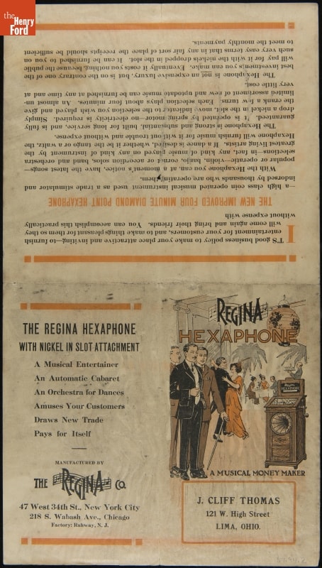 Advertising Brochure for Regina Hexaphone Style No. 104, "A Musical Money Maker," circa 1912