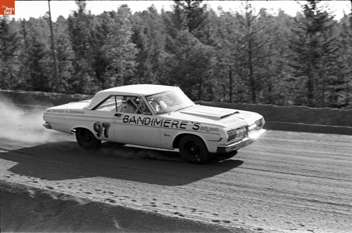 Photographer Dave Friedman captured and preserved auto racing history. His work -- and his collection of works by other photographers -- documents key races, cars, and drivers. This photo is from the 1964 Pikes Peak International Hill Climb, where driver Al Unser broke the existing speed record and finished first overall. Pikes Peak is called the "Race to the Clouds" because of its steep mountain route.