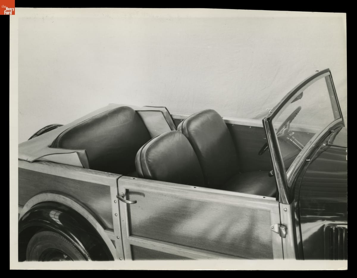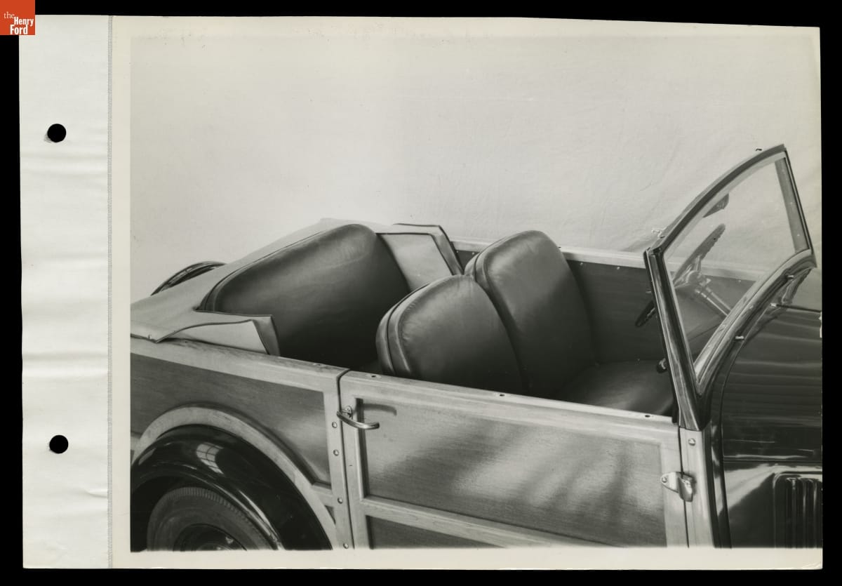 In 1944, Ford Motor Company president Henry Ford II requested the head of the Design Department, Bob Gregorie, to refurbish an unused 1931 Model A into a vehicle that Ford could use around his summer home. Gregorie, seeing the postwar potential of this type of vehicle, took the challenge. He knit together unused Ford parts with unrestricted wartime material to create this wood-bodied Estate Wagon.