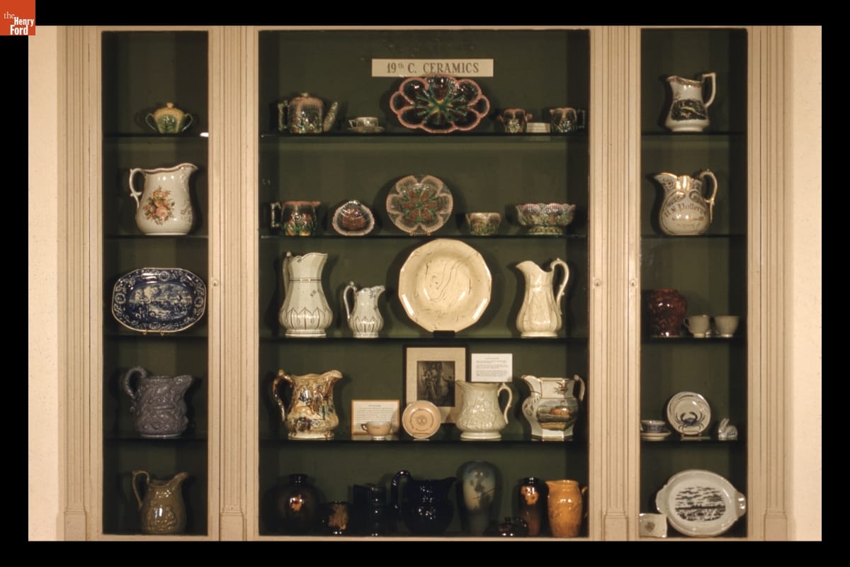 19th Century Ceramics Case in Decorative Arts Gallery in Henry Ford Museum, circa 1960