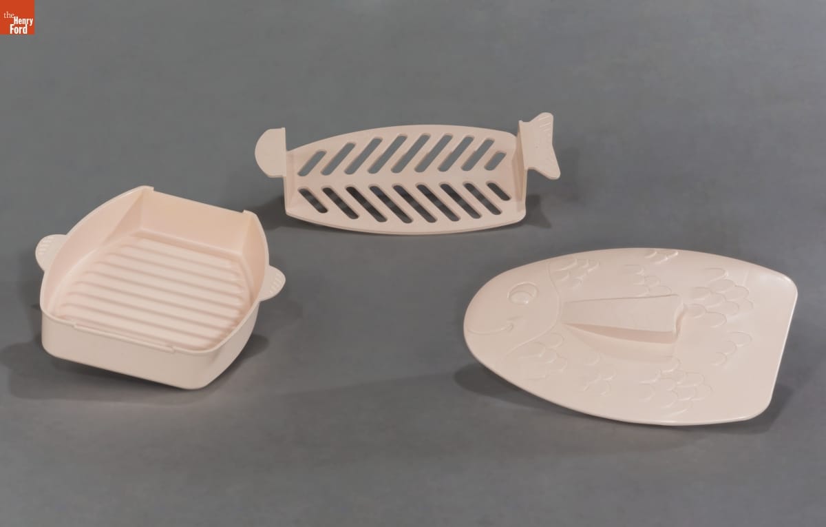 MICROWAVE FISH COOKER / COOKS / POACHES / STEAMS / Use for cooking, steaming, poaching and serving. / A healthy way to cook while saving time and entery. / The removable slotted tray has handles for easy lifting and draining. / Built in rack on bottom of pan keeps tray above water and juices for perfect cooking or steaming. / Also great for vegetables and reheating. / Top shelf dishwasher safe. / For microwave use only. / Do not use for bacon or foods with high fat content. / SEE RECIPES PRINTED ON INSIDE OF BOX / While wearing mitts, lift out slotted tray and excess liquid will drain off. Then tilt the tray to allow fish to slide onto the serving plate. / Wear oven mitts while removing fish cooker from the microwave and open lid away from yourself and face to avoid hot steam. / Cover / Removable slotted tray / Pan