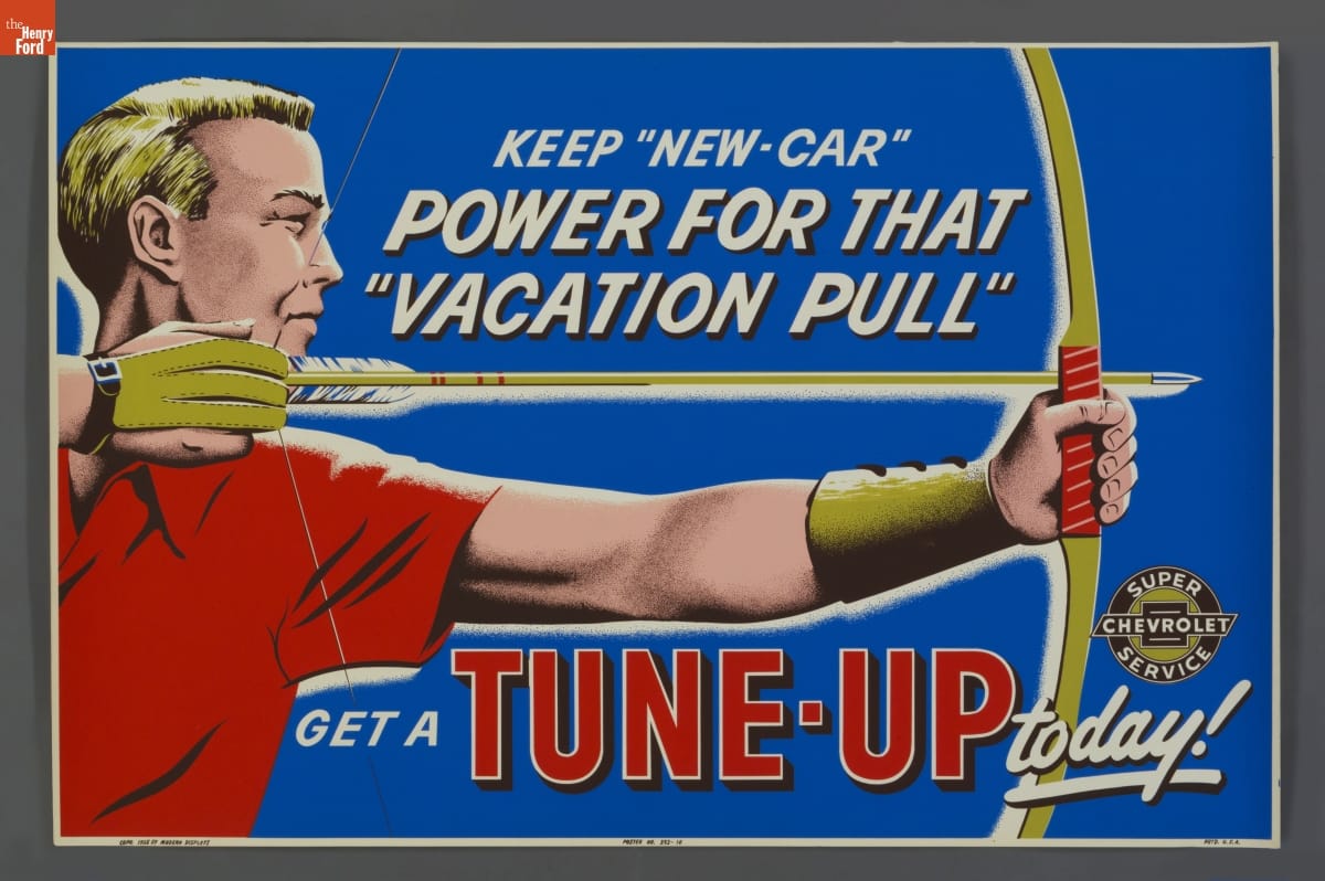 Throughout her career, artist Jacqueline Bergey Ward worked for several prominent Detroit-based commercial art studios, where automobile manufacturers and dealerships were significant clients. At Roupp Art Studios in the late 1950s, Ward created posters advertising auto maintenance and repair services -- an important source of revenue for dealers. Bright colors and playful slogans characterized her work.