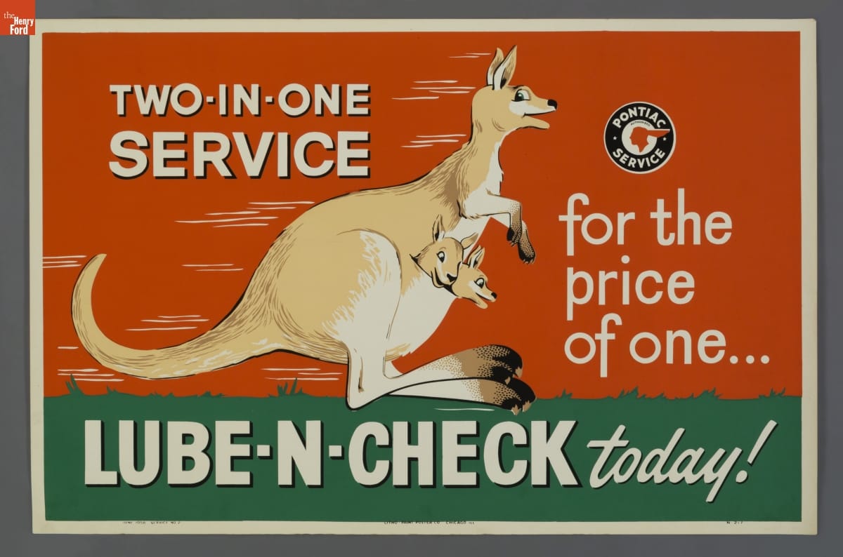 Throughout her career, artist Jacqueline Bergey Ward worked for several prominent Detroit-based commercial art studios, where automobile manufacturers and dealerships were significant clients. At Roupp Art Studios in the late 1950s, Ward created posters advertising auto maintenance and repair services -- an important source of revenue for dealers. Bright colors and playful slogans characterized her work.