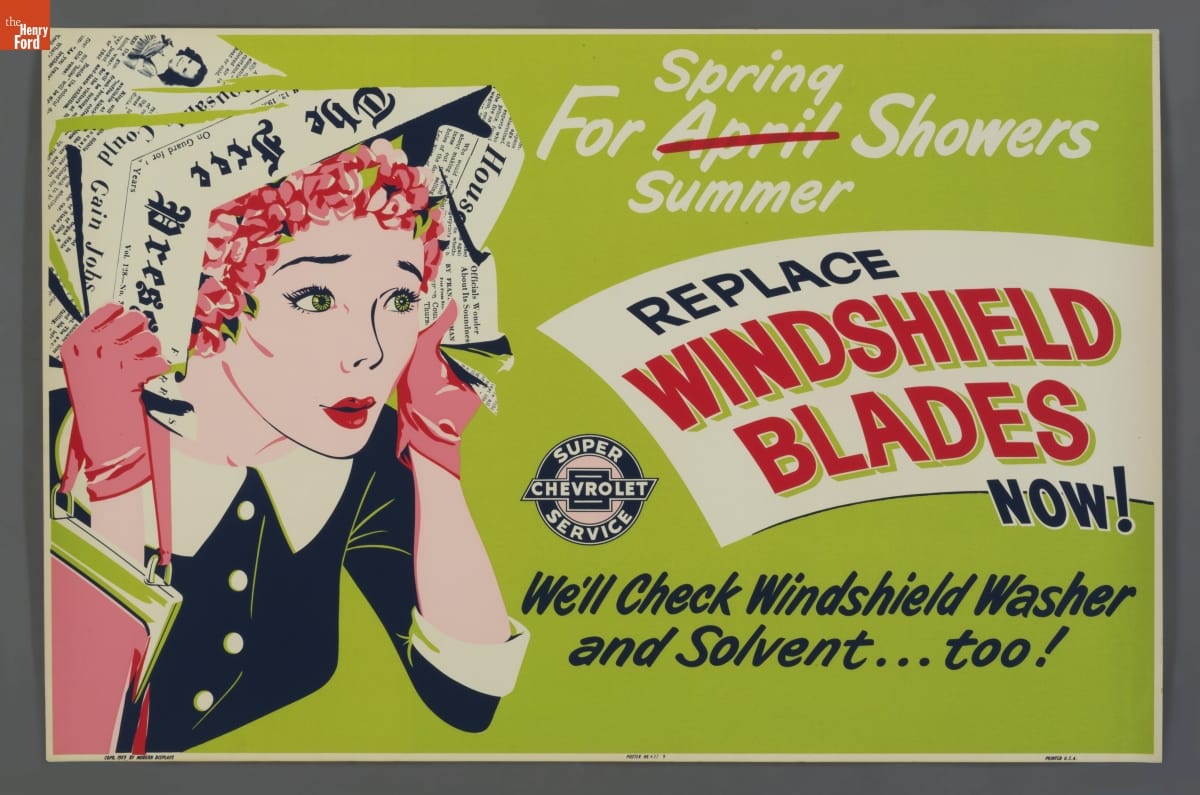 Super Chevrolet Service Poster, "For Spring Showers Replace Windshield Blades Now!," 1959