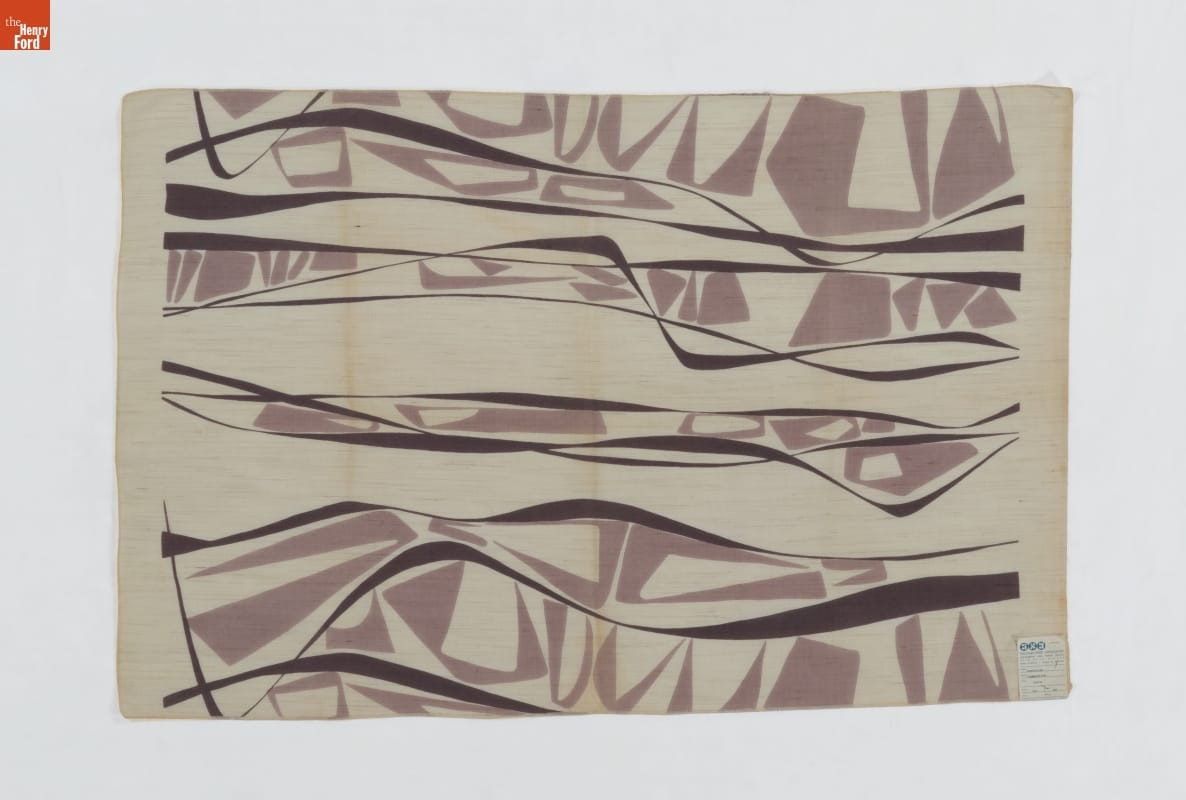Pioneering designer Ruth Adler Schnee was trained in architecture and first began designing textiles when her architectural projects demanded more modern designs than were available on the market. This need launched her career in textile design. Both natural and man-made environments inspire her work. This textile, named "Germination," was designed after a trip to the Arizona and evokes the desert landscape.